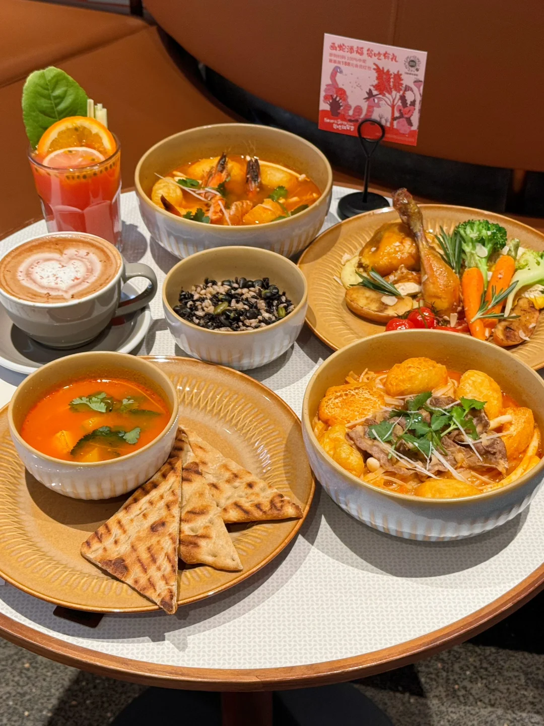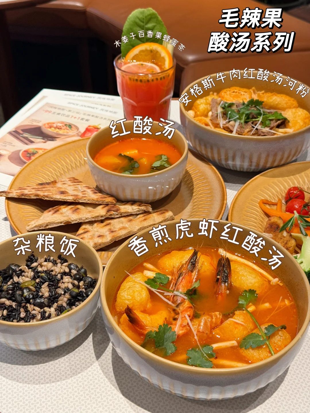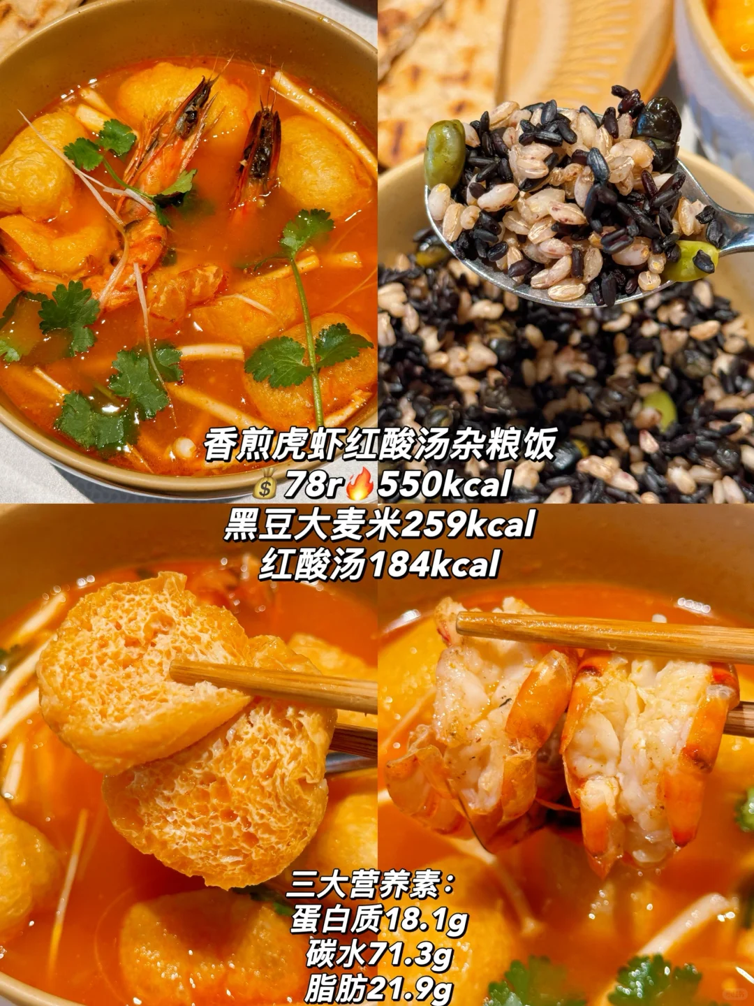 ☑️香煎虎虾红酸汤杂粮饭脑洞打开,红酸汤做的杂粮饭,鲜爽酸辣一锅端红酸汤的热烈,遇上菌菇的鲜香,瞬间点燃食欲。一勺红汤,一勺米饭,搭配鲜嫩虾肉,越吃越上头!