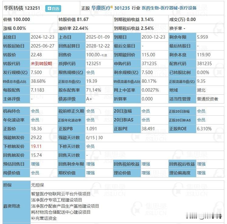1月9日渝水转债申购,华医转债上市。根据当前市场情绪及可转债交易行情: 渝水转债上市时预计会有25%的溢价,预估上市价格为120元;渝水转债为AAA级转债,当前转股价值较低,纯债价值较高,正股盈利能力尚可,上市首日有一定的盈利预期,建议顶格申购。 华医转债上市时预计会有32%的溢价,预估上市价格为108元。