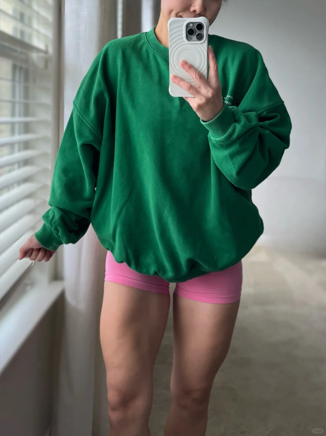 强行让csb的小古董卫衣出个镜,因为这个绿我实在是太爱了😍lulu的pink tide虽然跟官网比色差确实比较大,但实物颜色也值得拥有,是非常好看的偏橘色的粉呢!