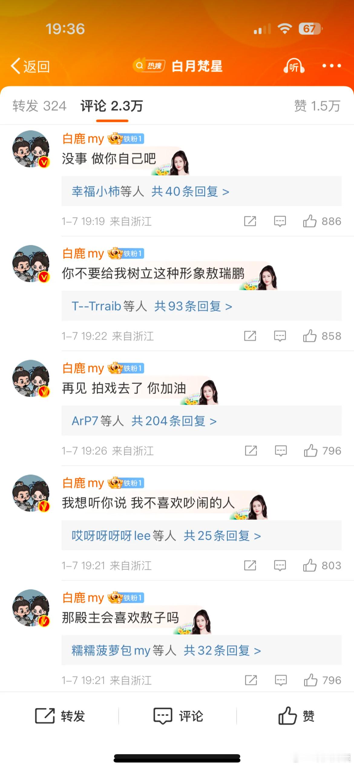 白鹿在敖瑞鹏评论区刷屏了,看得出来剧组的感情真的很好啊[doge]