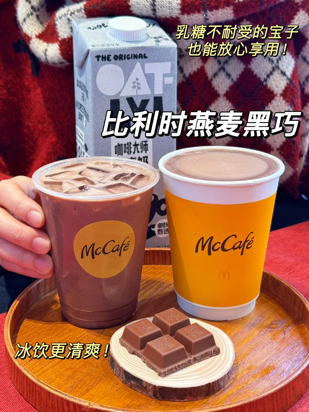 燕麦奶碰撞比利时黑巧,淡淡的谷物香交织着浓郁可可味,巧克力味更突出了,乳糖不耐受的宝子也能放心享用。每一口都是双重满足,香浓加倍,冰饮更清爽!