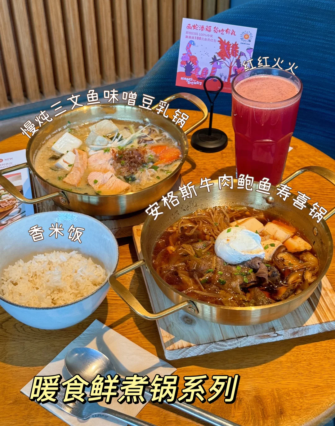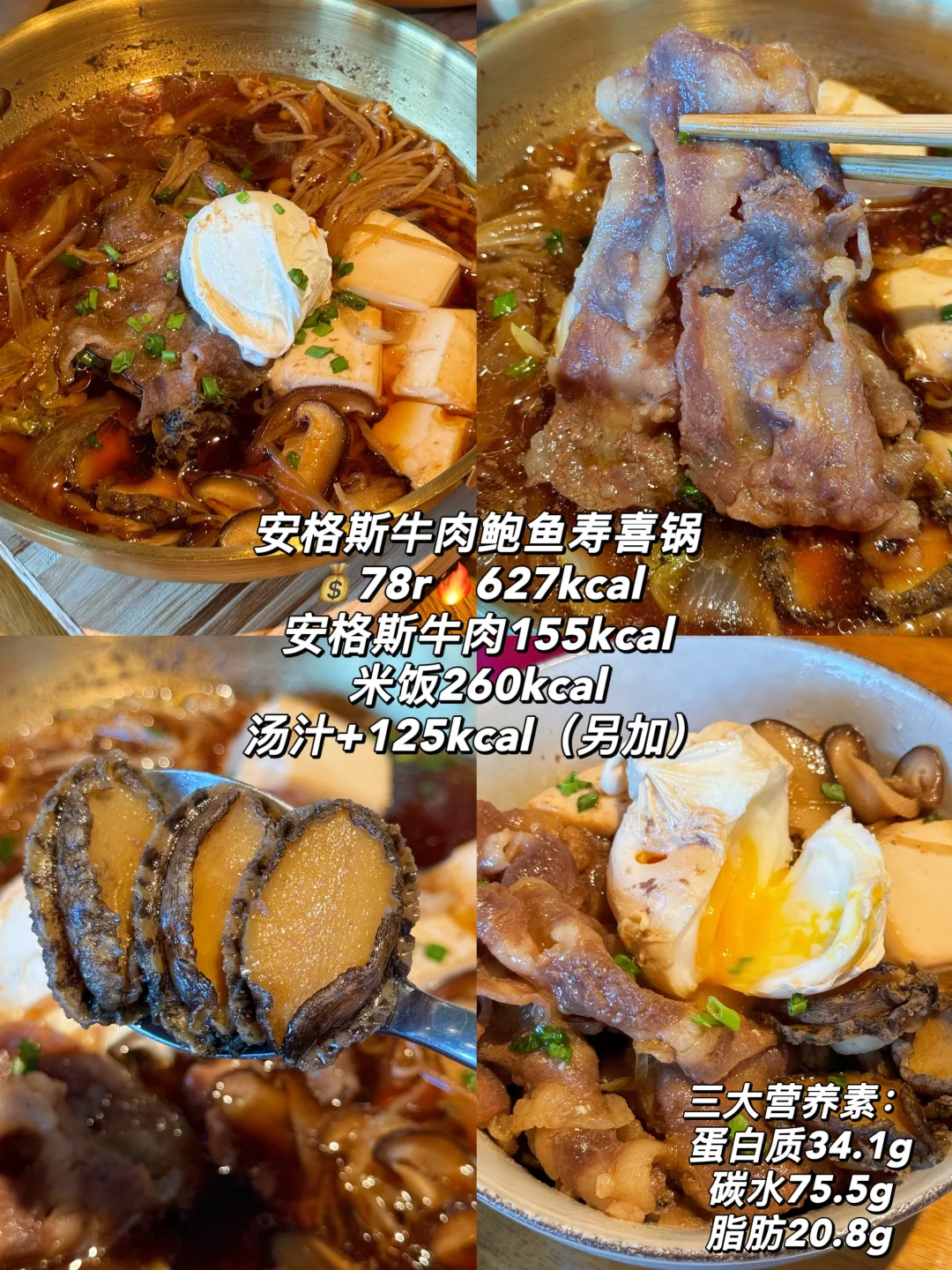 寿喜锅汤底,安格斯谷饲牛肉肥瘦均匀,奶香十足,还特别加入鲍鱼鲜味拉满,轻卡又满足!