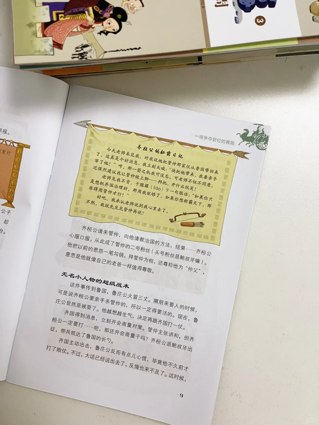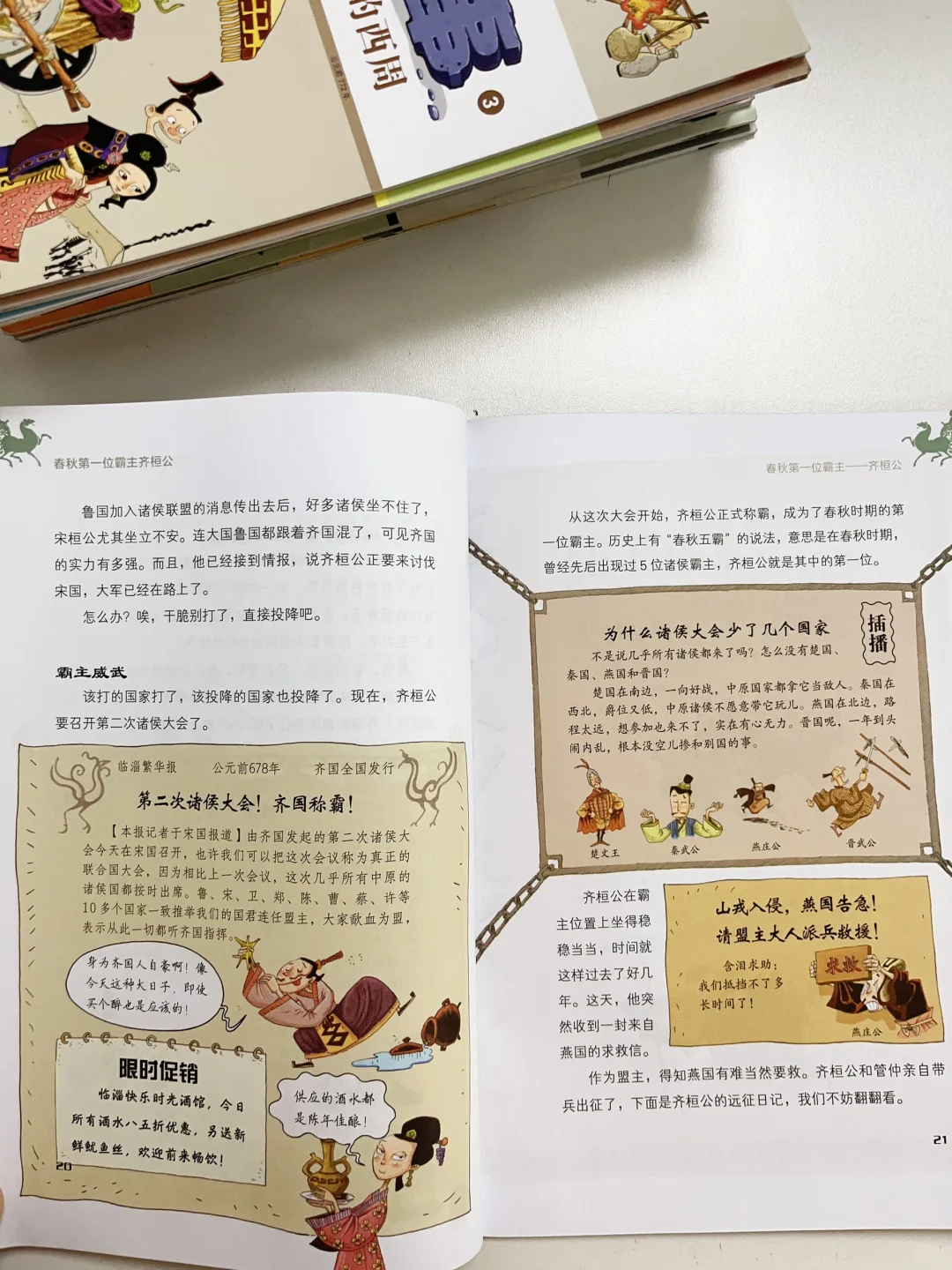 历史离娃儿很遥远,但是这套漫画历史故事用娃儿能读得懂,读得透,读得下头,用简单直白的话语来讲历史故事和历史知识,及科普历史知识点。没有什么晦涩的词语,整体非常流畅好读。并且还配合日记,插播等形式进行知识补充,为了让娃儿理解得透彻,掌握得清楚,可真是煞费苦心。