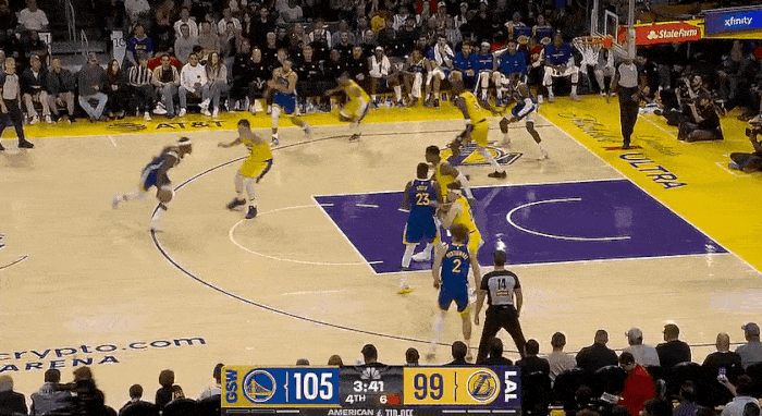 NBA常规赛,湖人对阵勇士的比赛正在进行中。