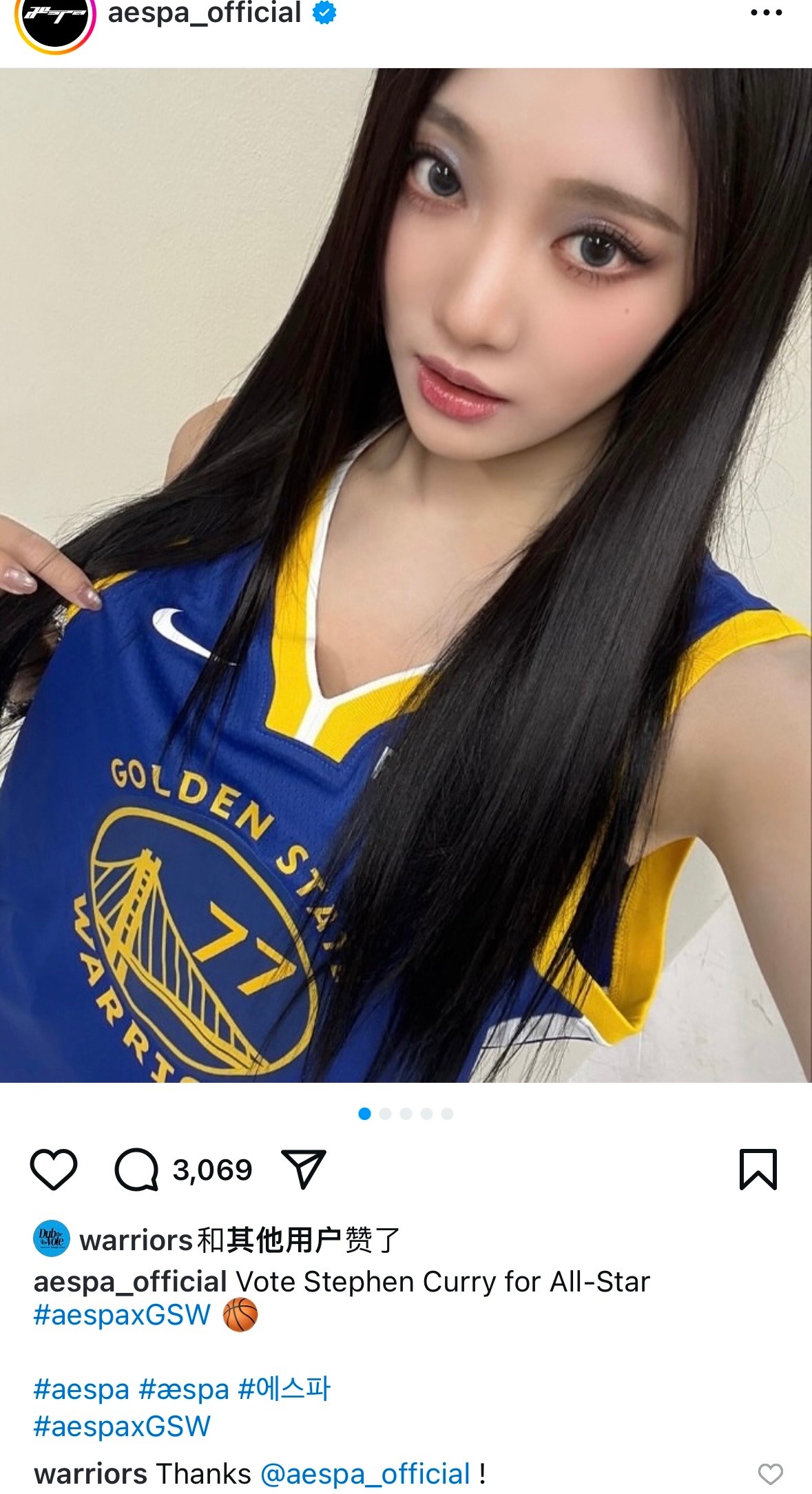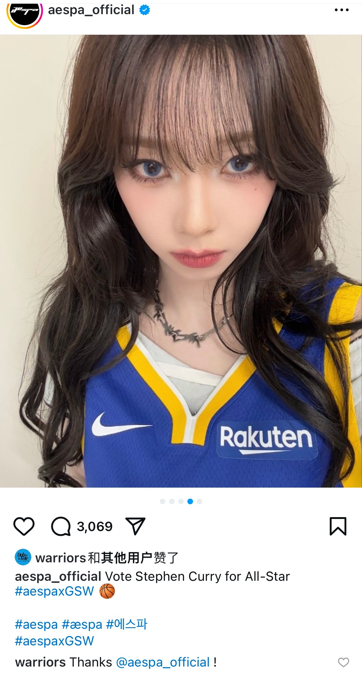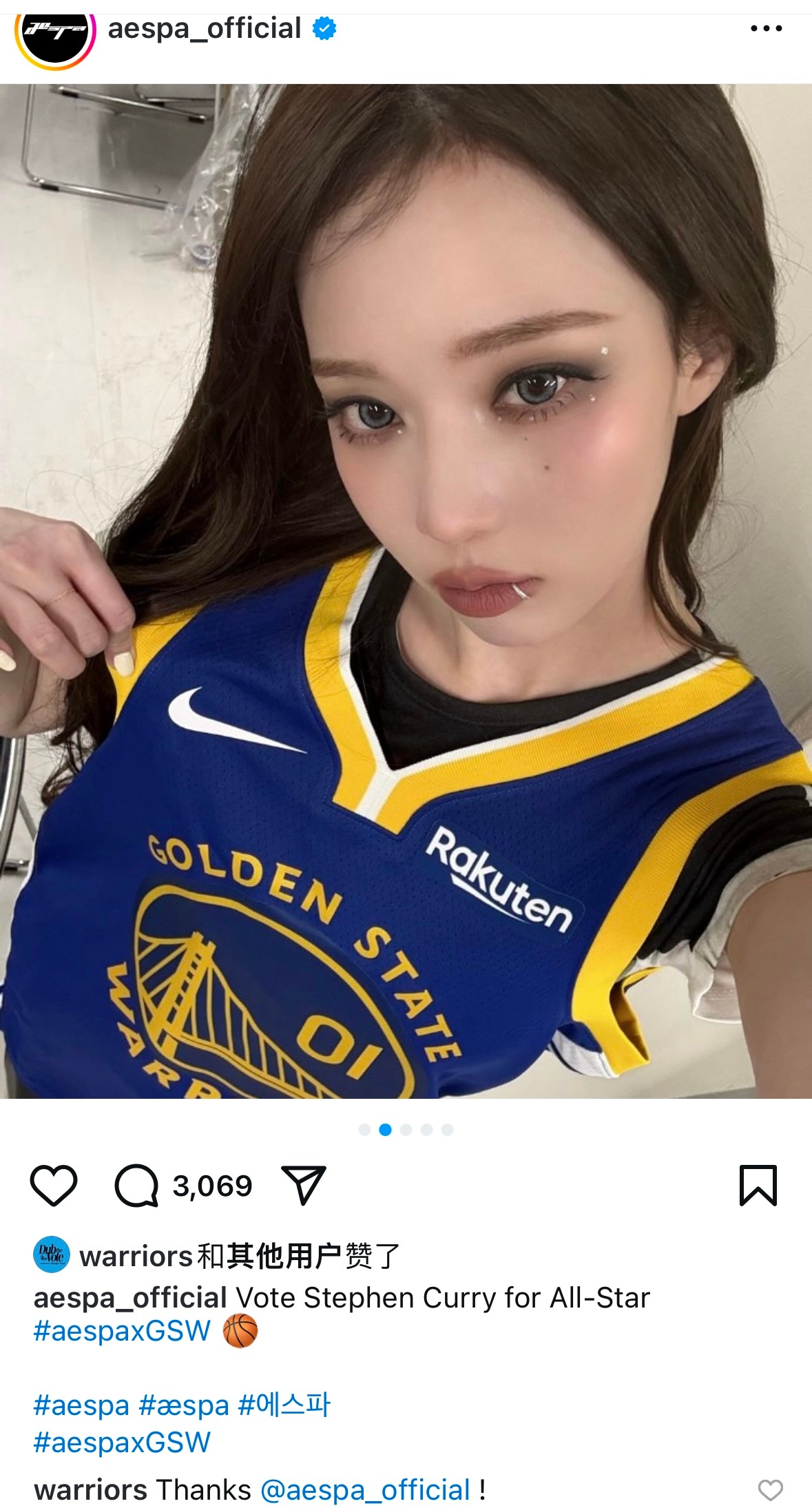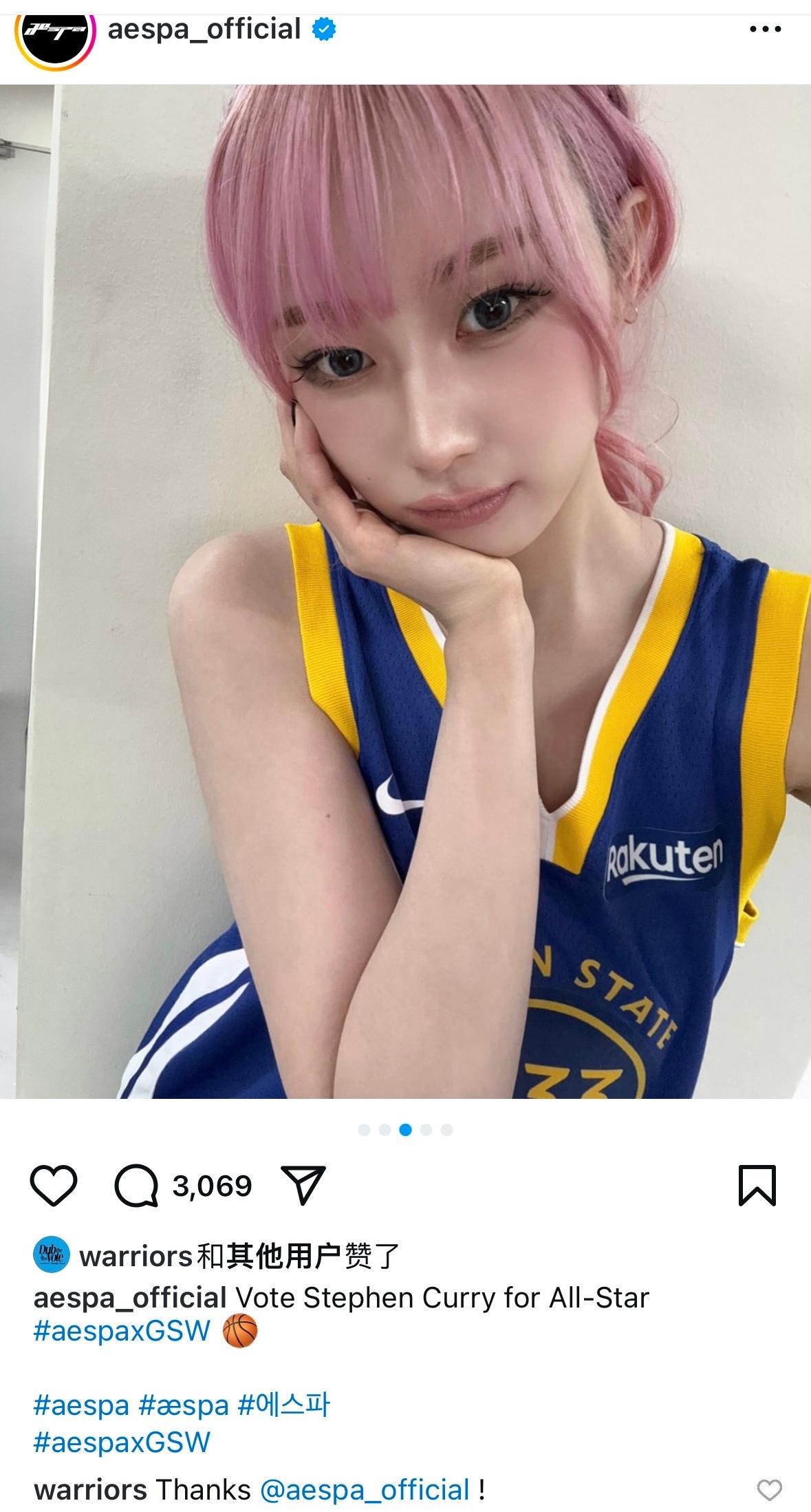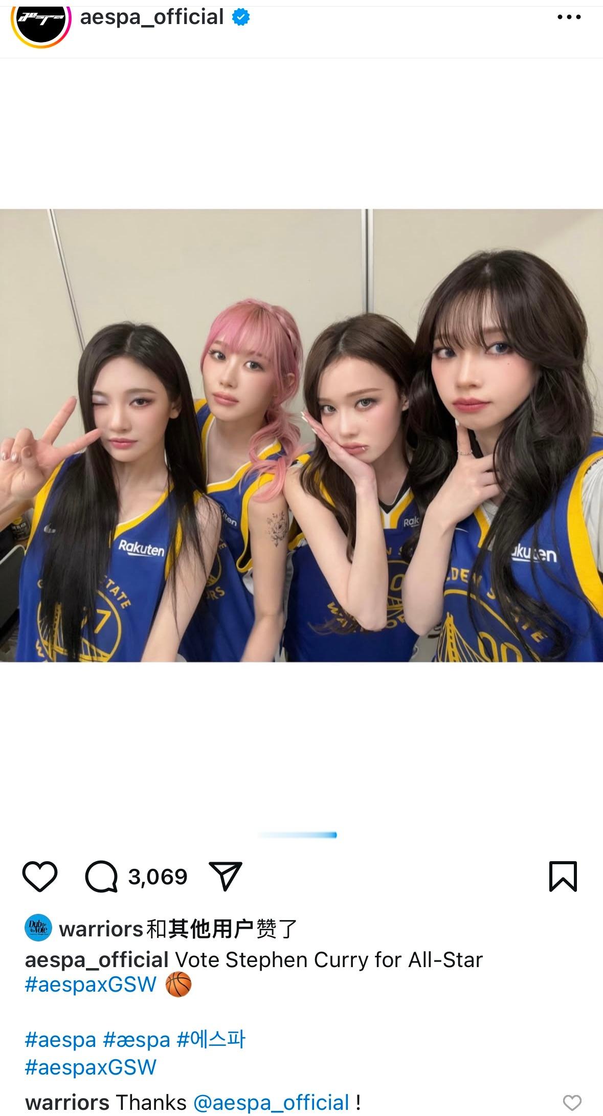 今日勇士官方邀请韩国女团aespa为库里助力投票。还有李马克与钟辰乐。