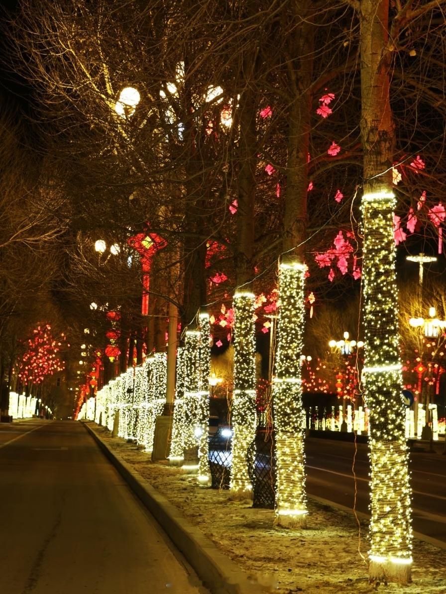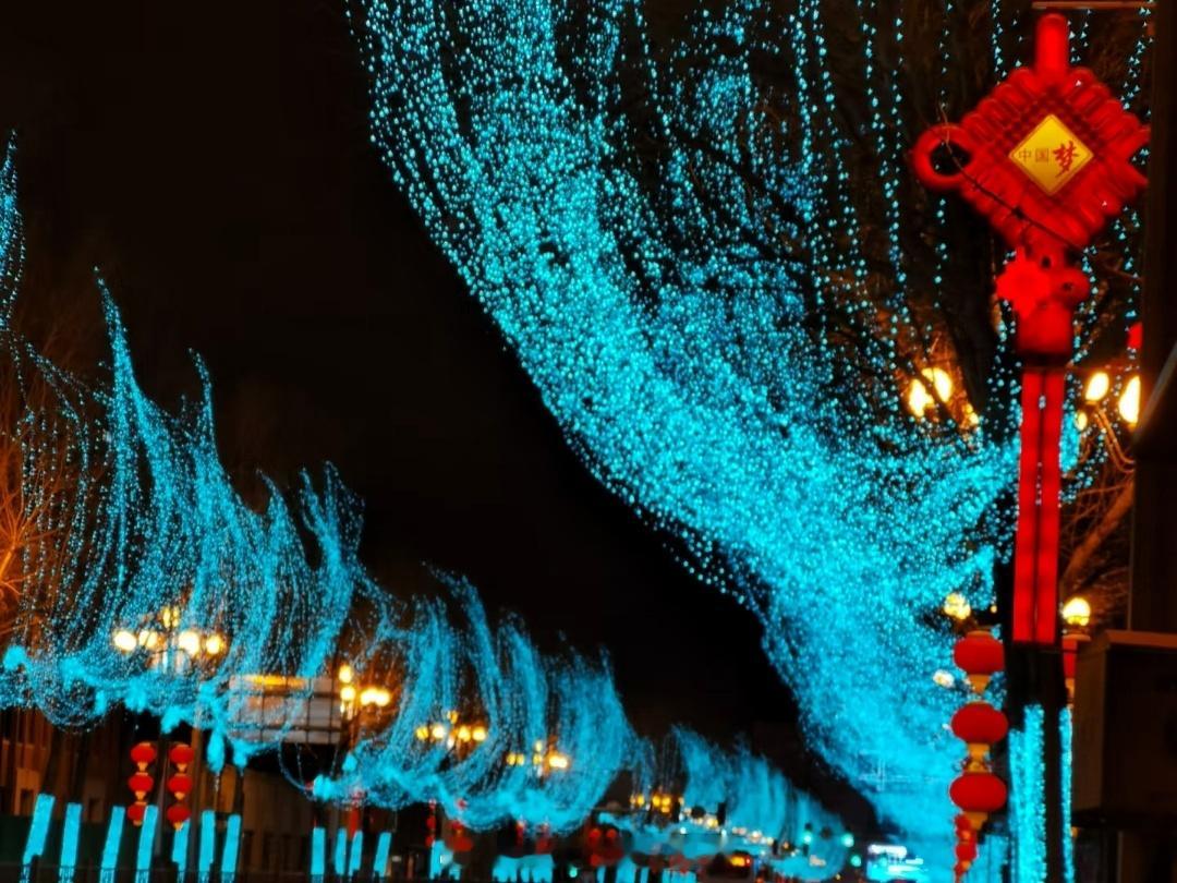 快过年了,长春的大街小巷都开始热闹起来。马路边,公园里、广场上,到处都挂满了花灯。有圆滚滚的大红灯笼,还有各种卡通造型的灯,像小兔子、小老虎啥的,特别受小孩子们喜欢。到了晚上,这些花灯一亮,长春的夜空瞬间就亮堂起来了,走在路上,感觉心里都暖和和的,就像小时候在村里,家家户户门口挂灯笼,那股子热闹劲儿又回来了。
