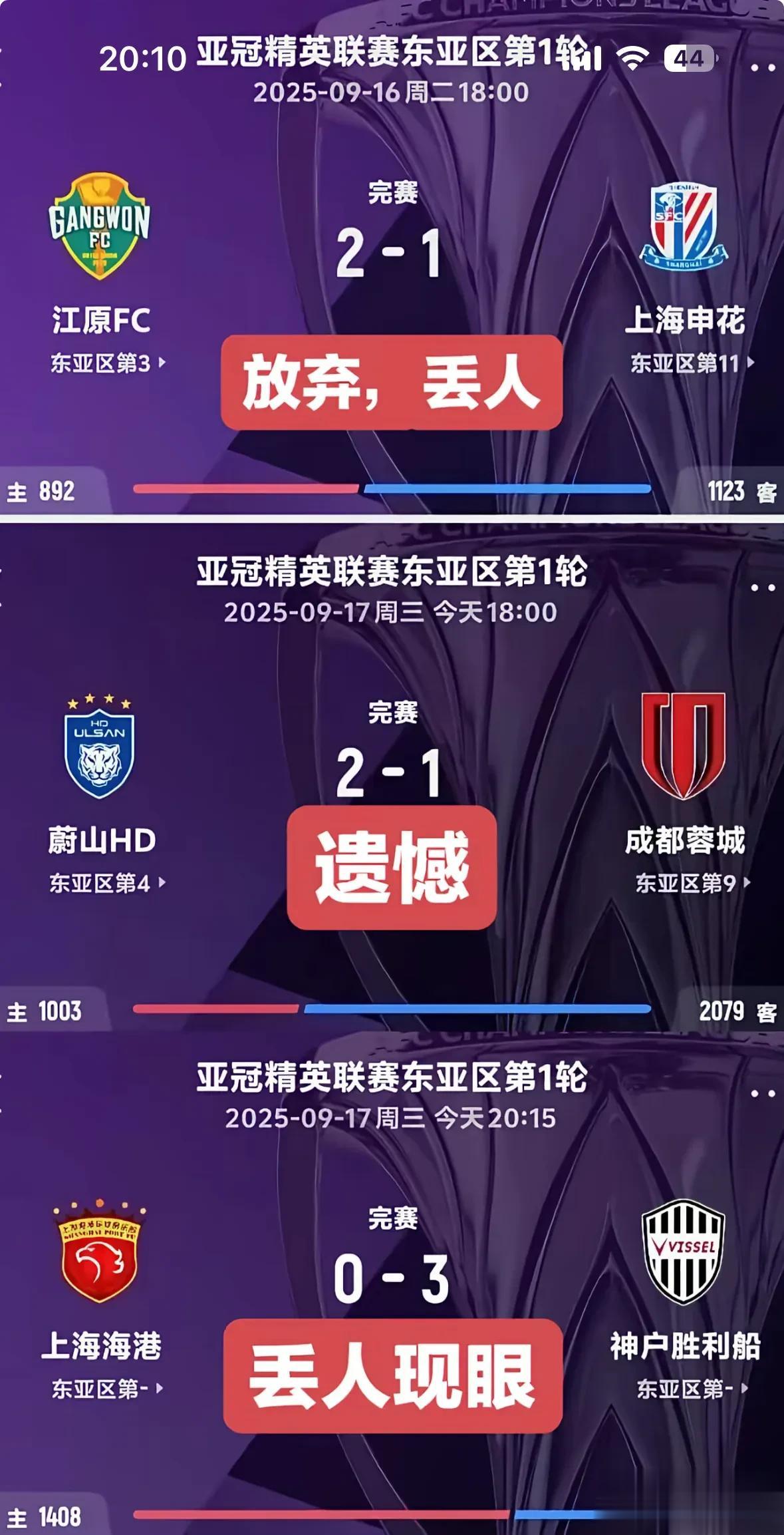 看看各队的排兵布阵就明白了,上海申花去韩国踢江原FC,直接轮换了八个主力,就带了一个外援,上海海港打日本球队,首发换了七个人,这明摆着就是在说:联赛才是我们的主战场,成都蓉城倒是上了主力,但一看领先就把核心外援换下来了,这心思谁还看不出来?