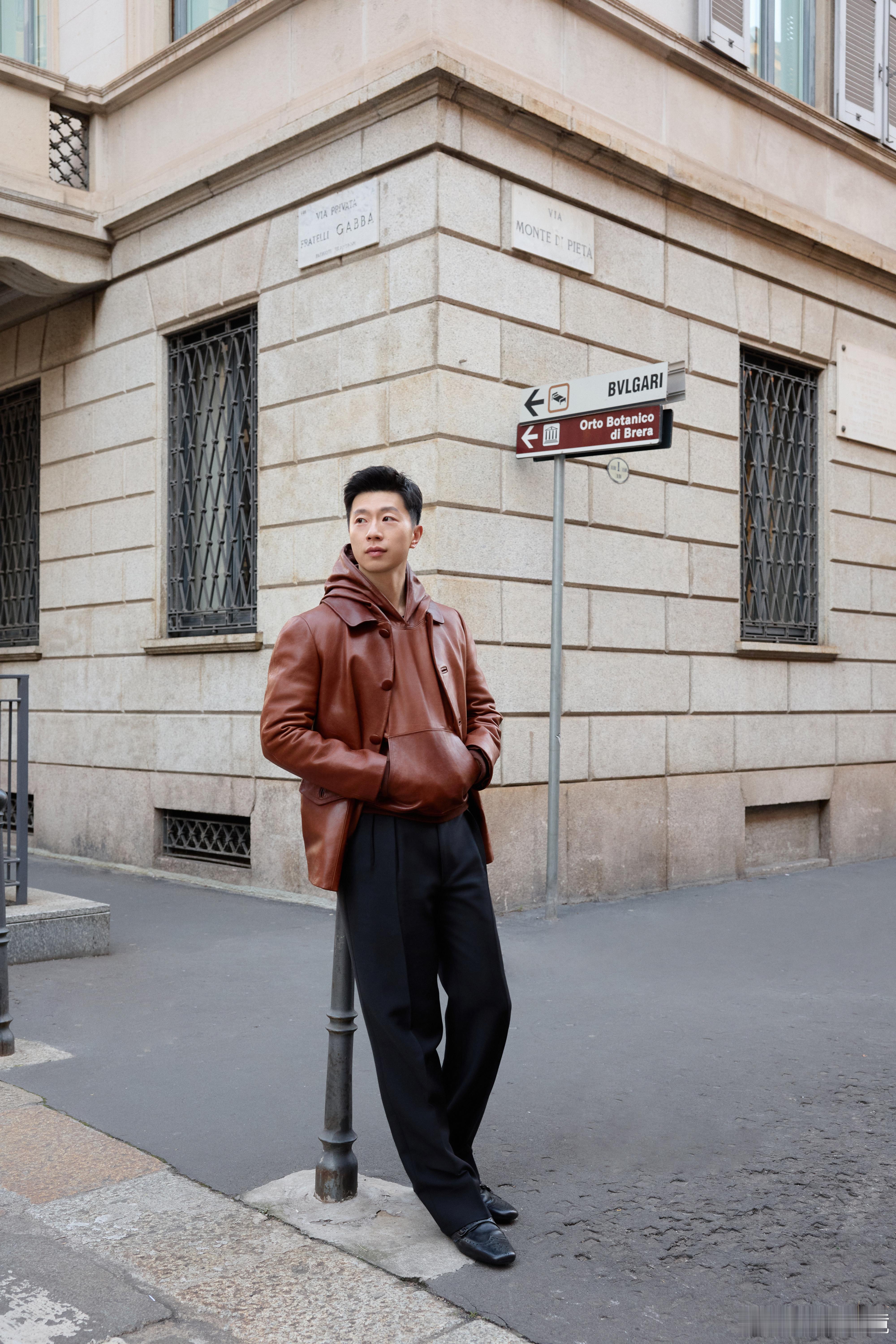马龙皮衣造型好绝 马龙在米兰的皮衣造型,将他的气质展现得淋漓尽致,那种酷帅与自信,让人不禁感叹他的时尚驾驭能力。对他秀场的造型,充满了期待!
