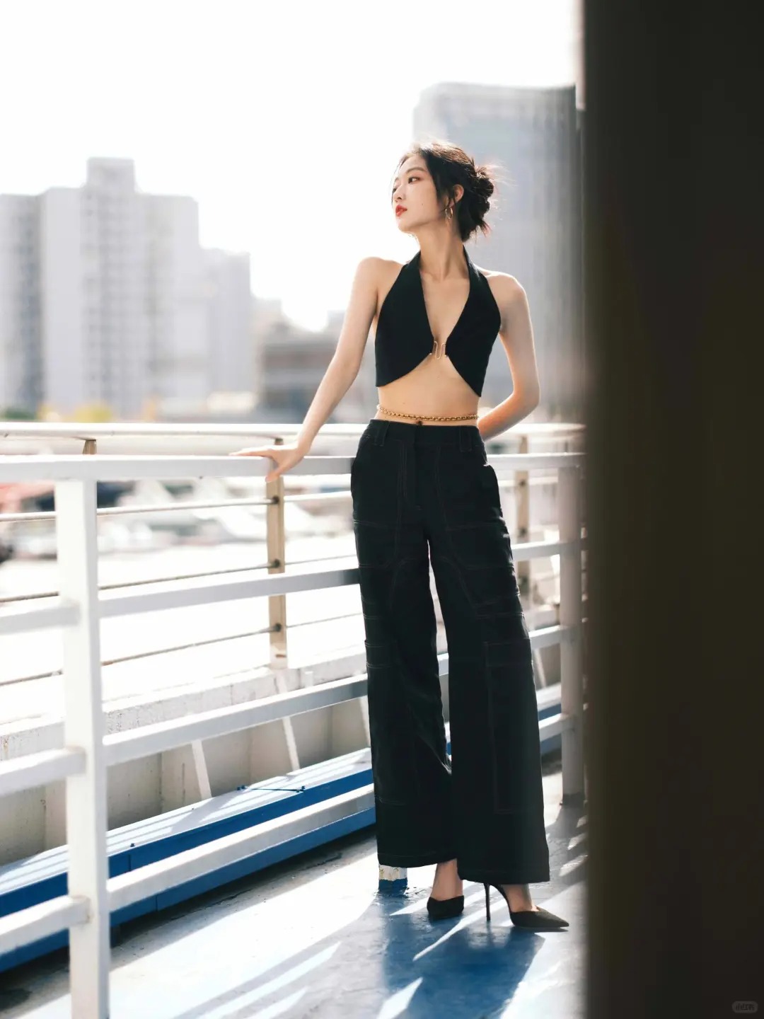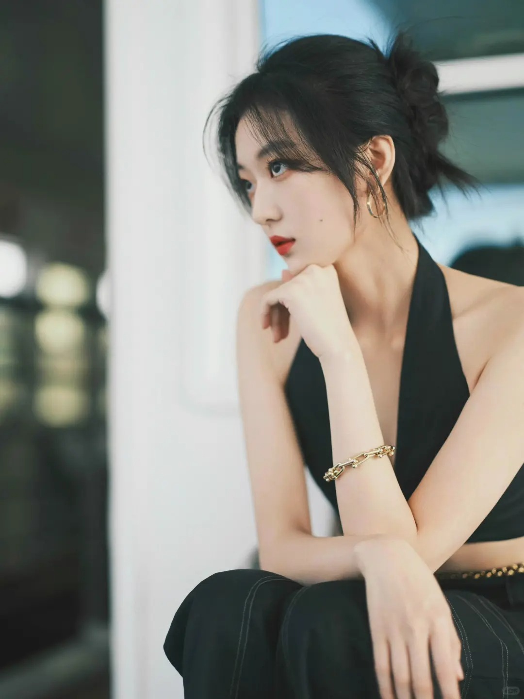 孙千有着一张冷脸御姐的脸蛋,加上其出众的身材和独特的气质,吸引着无数粉丝的目光。孙千一直都保持着健康而又恰到好处的丰满感,给人一种赏心悦目的美感。 孙千出了外貌和身材出众外,穿衣也有着她独特的韵味,既清新脱俗又不失性感妩媚,那独树一帜的衣品,让她成为时尚新宠。 孙千非常懂得通过用服装造型来凸显自身的身材优势,照片中,身穿黑色挂脖上衣搭配黑色阔腿裤,加恨天高,气场堪比超模。整个人显得腰细腿长,将自己的好身材大方秀出来。 黑色挂脖上衣,完美展示出上半身的轮廓,露出漂亮的肩颈线条和腰线,让肌肤得到大面积的露肤,带来清爽感的同时又让她整个人更具性感气息,露背的设计,凸显蝴蝶骨,交领设计,让胸部曲线隐隐约约有所展露,性感又魅惑。