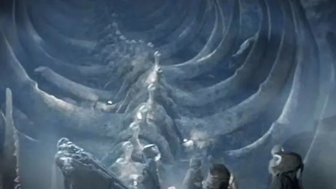 从达贡的骨骼分布画面来看,是不是与那副神秘的超巨型骨架有些相似?因此,在目前尚未有更多线索的情况上来看,这幅骨架更有可能来自超古时代某只原子恐龙裔的王者,可能经历了某场旷世已久的诸神之战,最后陨落于此,换言之相当于哥斯拉祖先大战一样,答案可能会在后续的剧集中逐步得到解释。