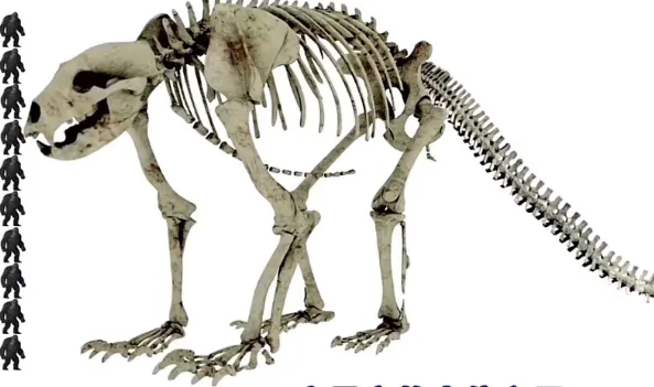 如果我们假设图像中的金刚与骨架换算比例,我们可以开始推断,我们看到总共有32个金刚依次排列,用以衡量巨骨的长度,这只是我们的估计,因为尾巴可能更长,所以32个金刚是102.7米,我们可以得到巨骨的长度约为3.3km。
