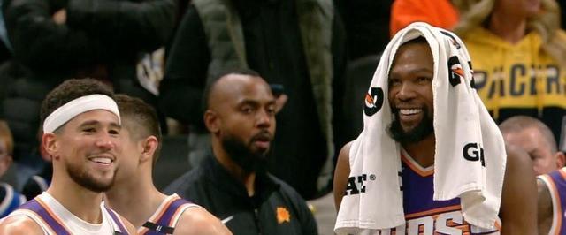 杜兰特和布克赛后笑得开心,像话里有话,球迷琢磨是不是比尔和巴特勒要有大交易。球员受伤、禁赛、比赛延期赶到一块儿,能不让人多想嘛。