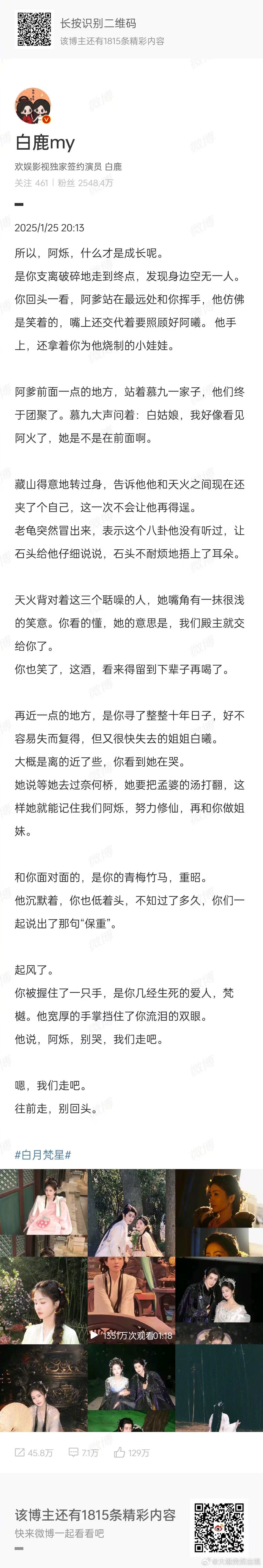 白鹿[超话] 白鹿说阿烁别哭向前走吧 家人们快来看,白鹿的追剧陪伴太有创意,九宫格、换头像,2024制片人最爱实至名归!
