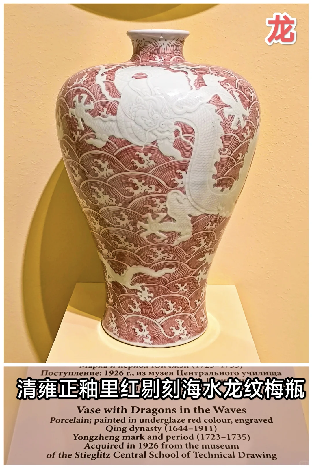 ⑤清雍正·釉里红剔刻海水龙纹梅瓶