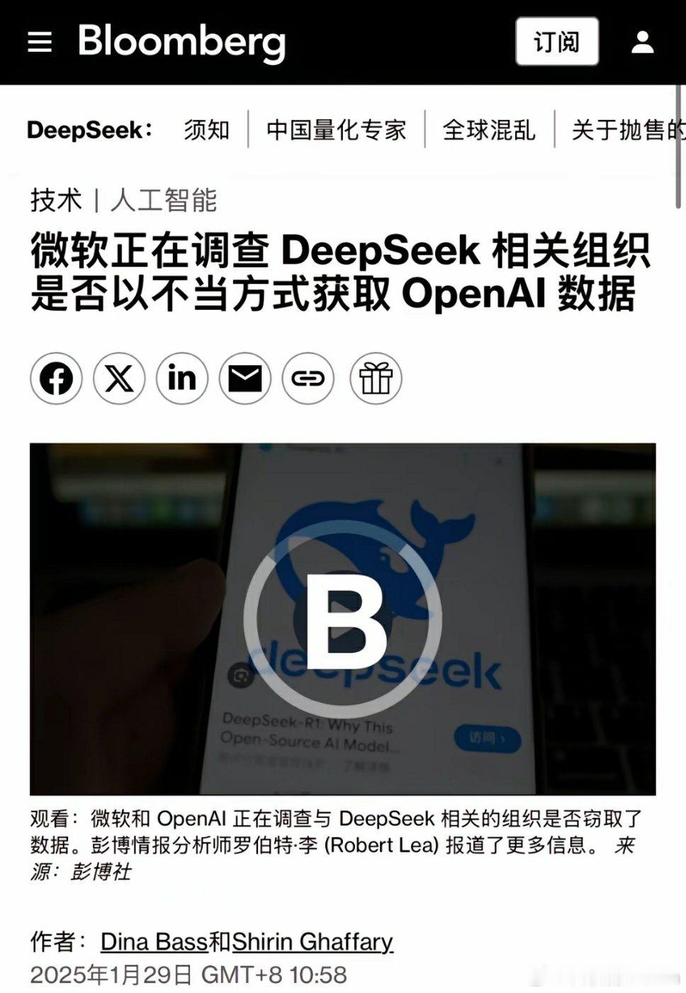 🔻微软上演川剧变脸。🔻昨天调查DeepSeek是否窃取OpenAI知识产权。