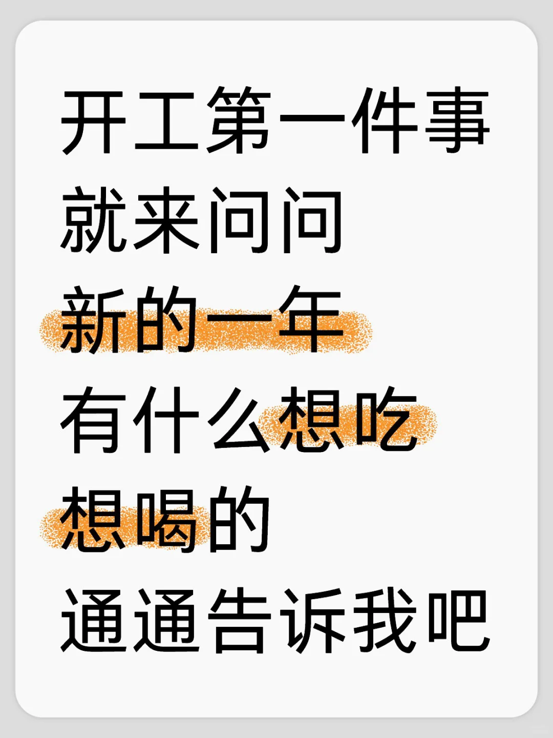[红包R]开工第一更 就来问问[哇R] [福R]新的一年有什么想吃想喝的 通通告诉我吧[喝奶茶R] [斜眼R]我的工作就是给努力给全测完!