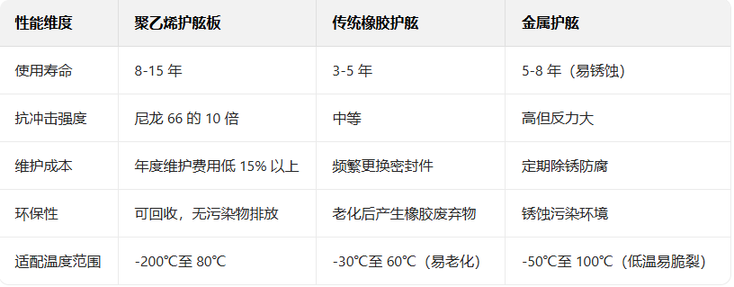 与橡胶、钢材等传统护舷材料相比,聚乙烯护舷板的综合竞争力尤为突出: