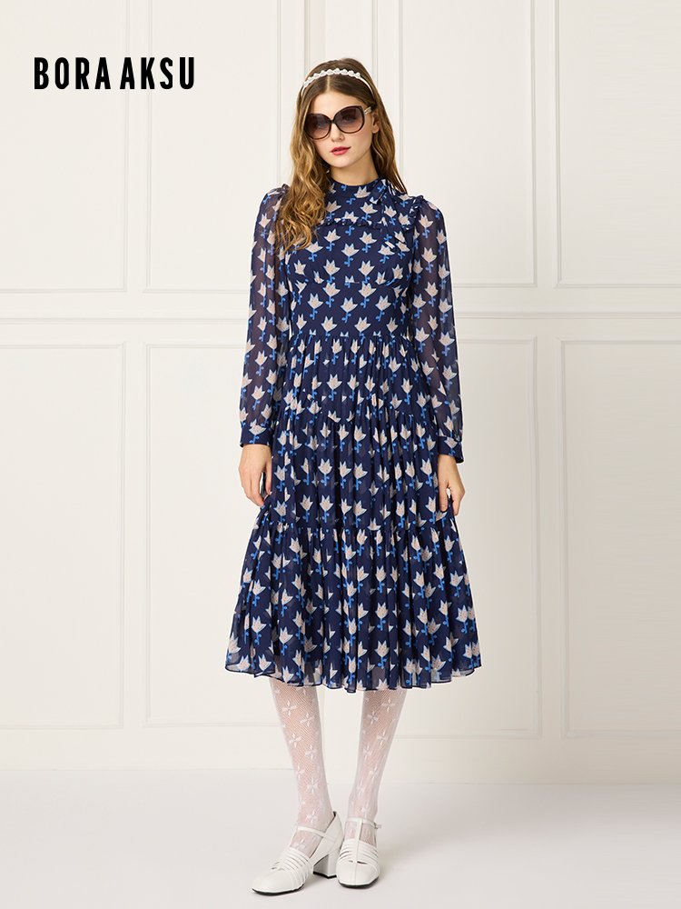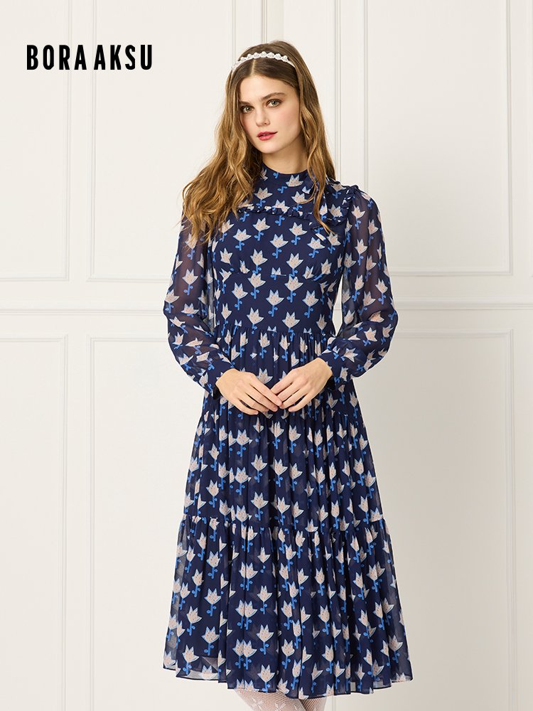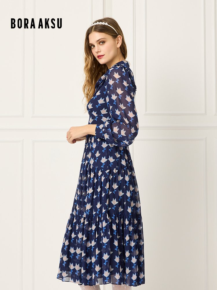 这款印花连衣裙采用柔美的蝴蝶结缀饰配合浪漫的木耳边细节点亮单品,收身版型剪裁流畅,裙摆富有层次感的褶裥为单品带来浪漫风情,轻松打造优雅大方的淑女造型。