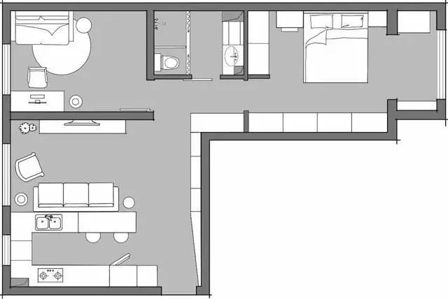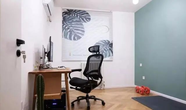 书房中是一个办公加健身的设计,没有太多的家具。墙面的颜色跟卧室客厅都很统一,到后期也可以改造成儿童房使用。