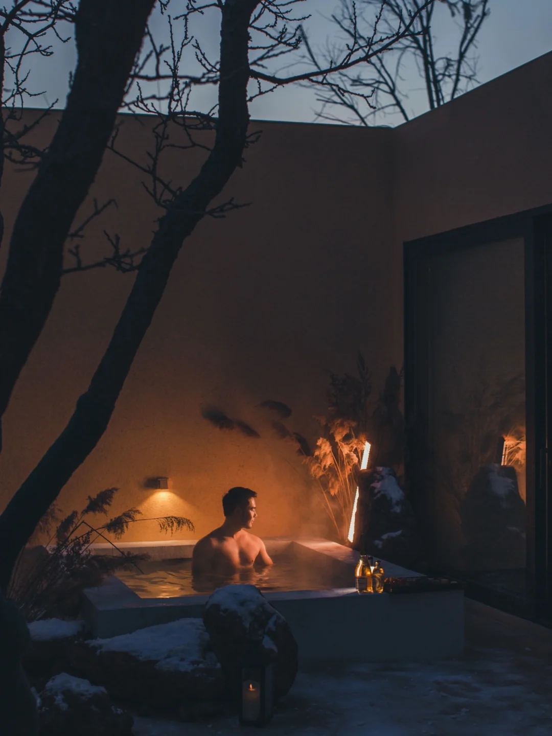 3️⃣ 汤池水雾+仙女棒长曝光(夜拍神器!)