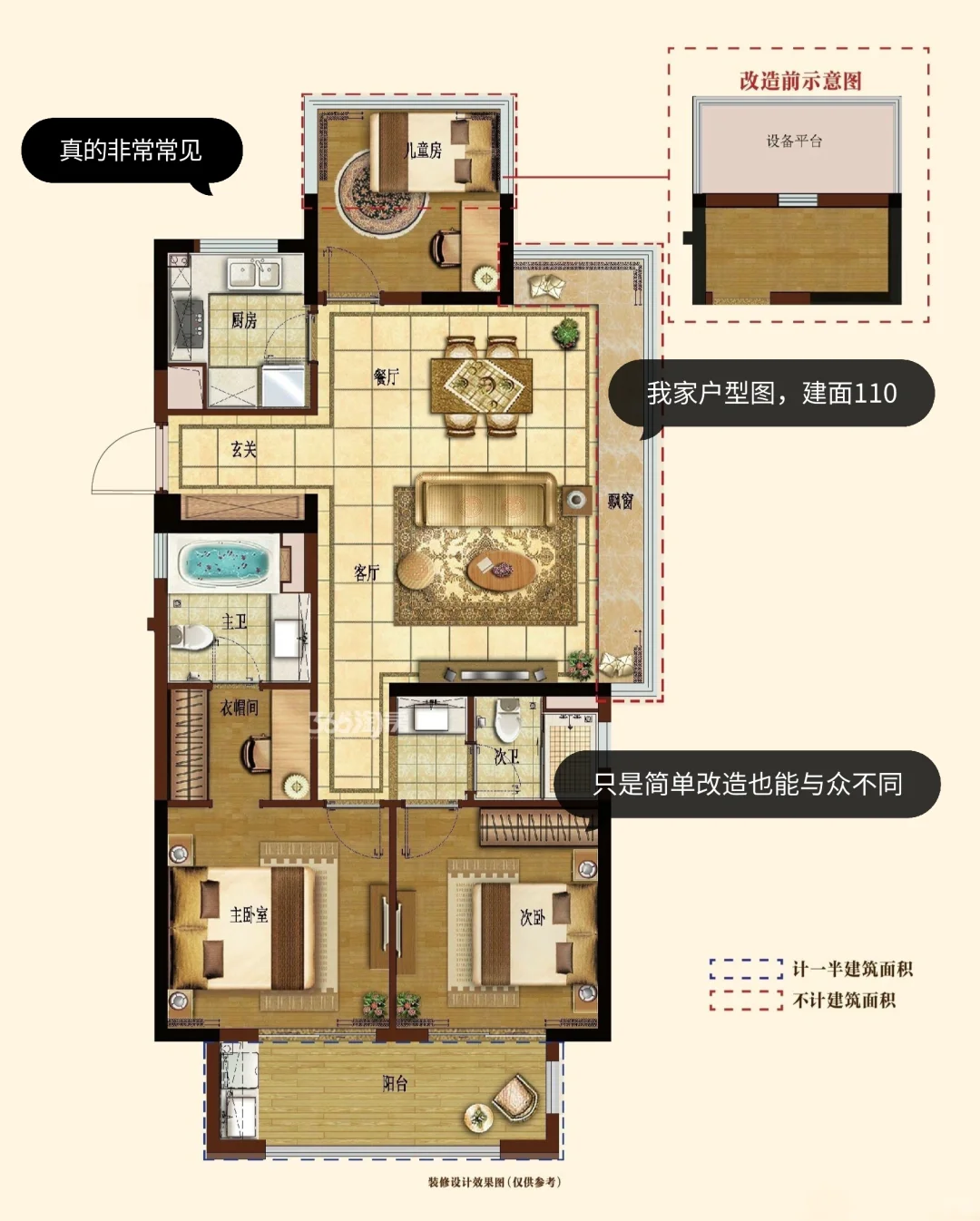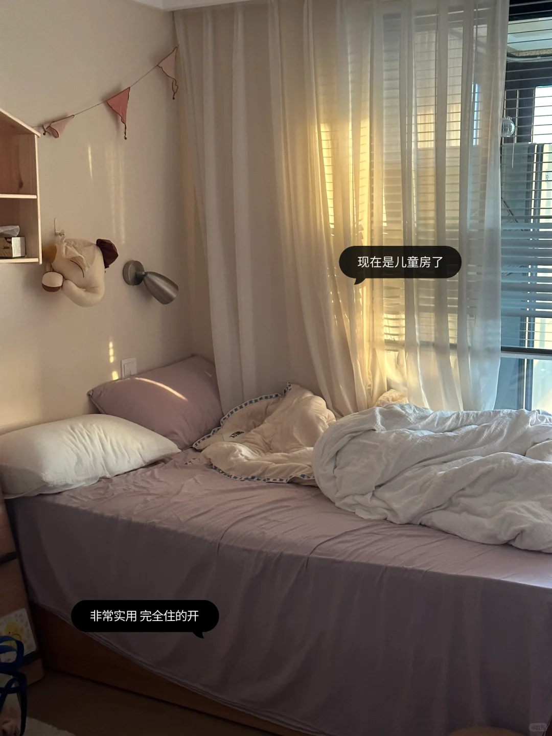 110方 东边套🌆 今天分享一下婚后入住的家 其实房子本身就是杭州这边最最常见的户型 普通精装修交付,胜在光线不错💫☀️ 没有大改格局,也没有耗巨资装修 只是简单的铺了地板(原本的地砖没拆),换了踢脚线装了柜子,不追求豪华简简单单就好~ 但是真的好舒服,无论是日出时充满朝阳的客厅 还是傍晚笼罩着温柔亮光的宝宝房 每个瞬间都有恰到好处的幸福感✨ 不羡慕大别墅,小三居才是真的温馨又自在👨👩👧