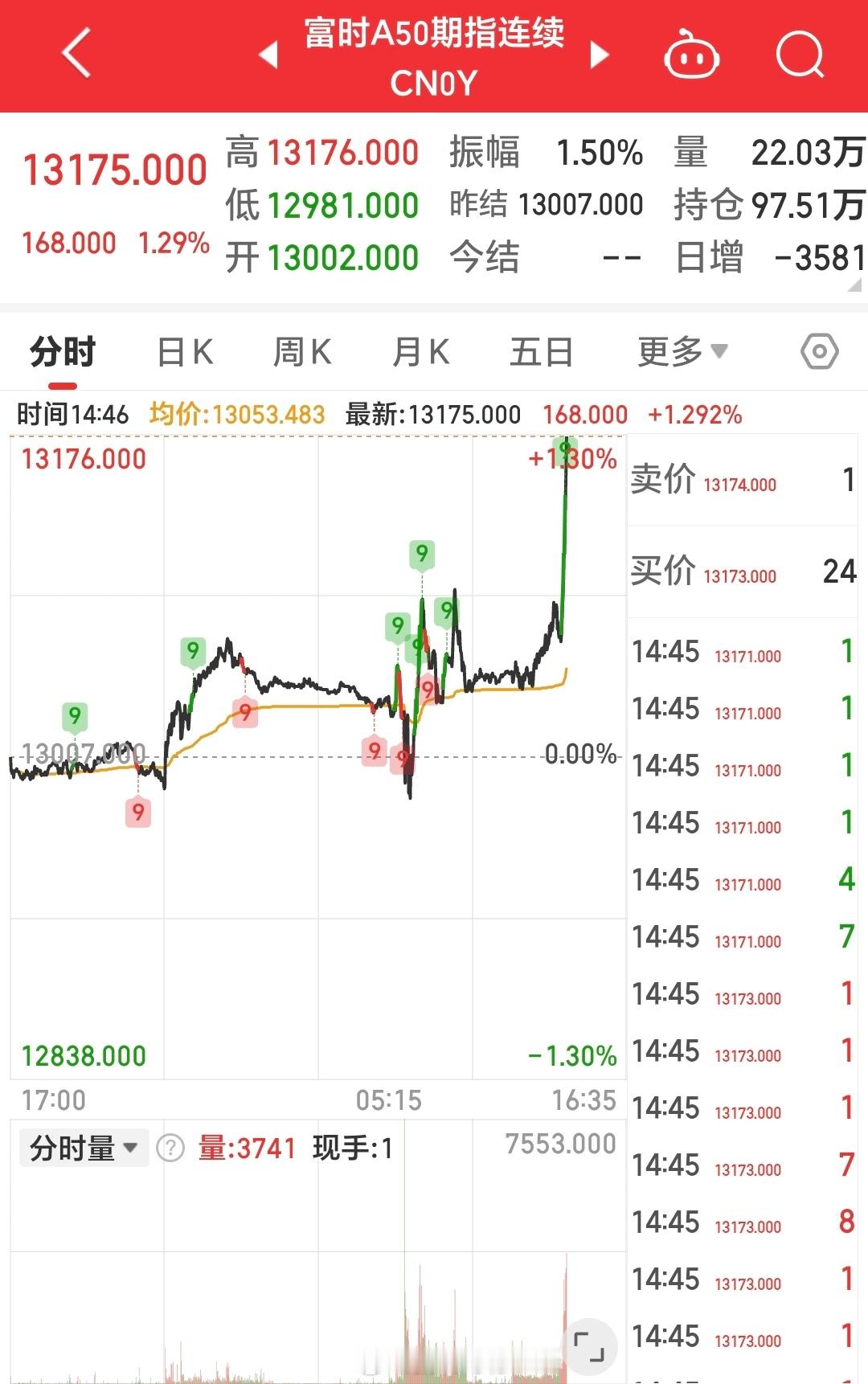 股票[超话] 什么情况,尾盘富时中国 A50 指数直线拉升超过 1%, a股 三大指数也在快速拉升
