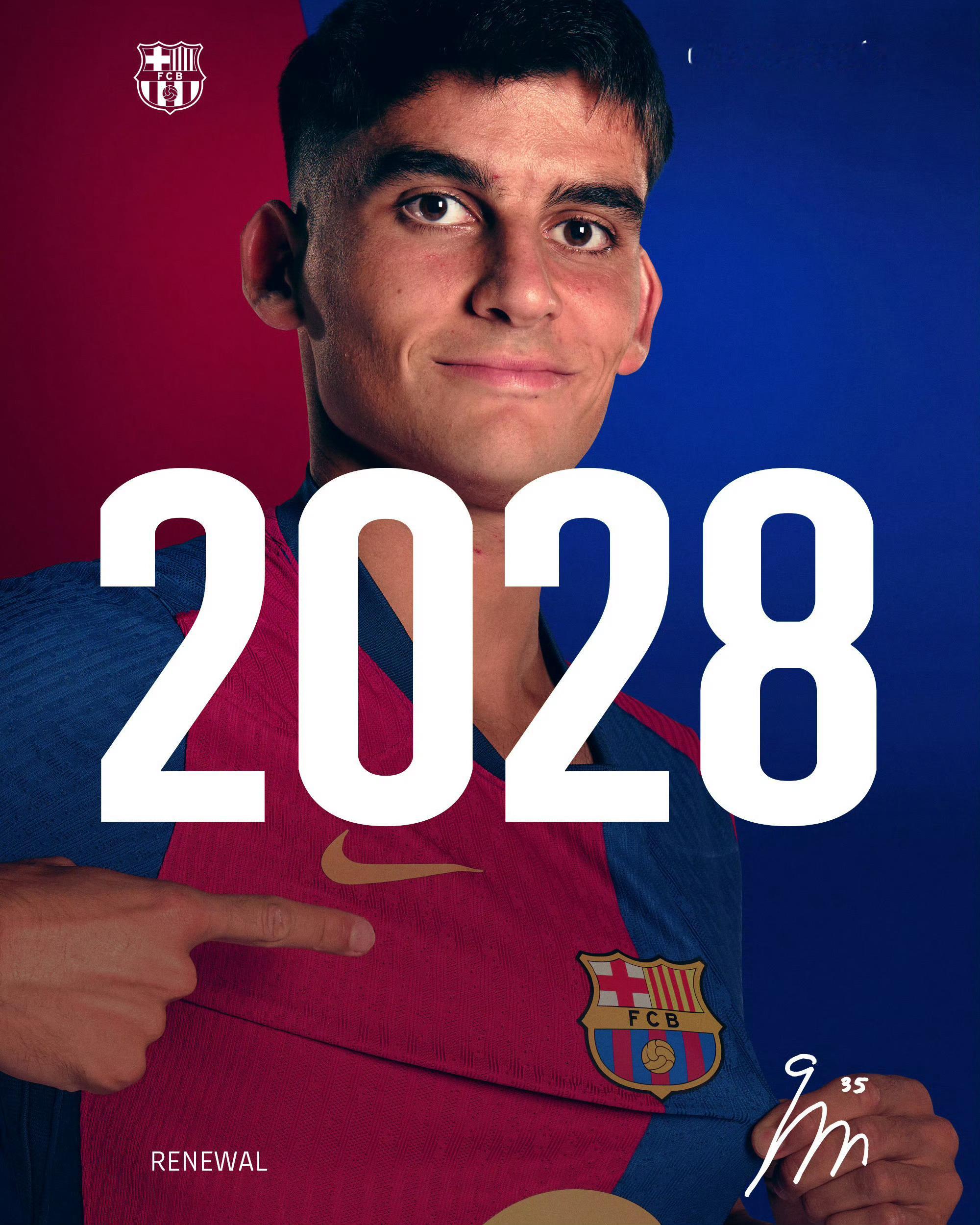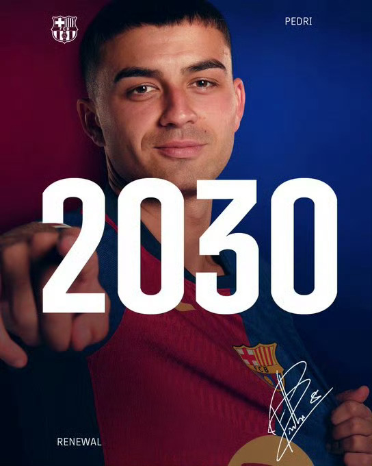巴萨过去完成的6笔续约:费尔明、阿劳霍、杰拉德-马丁、佩德里、加维和库巴西……