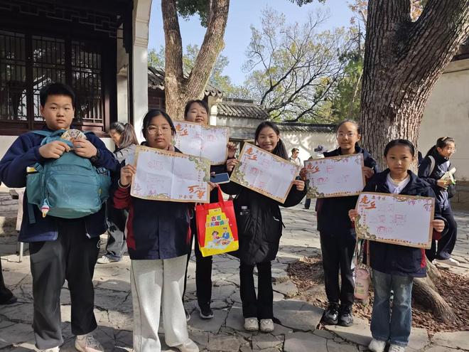 当天清晨,同学们背着小书包准时集结,乘巴士前往虎丘。车窗外的银杏叶飘成金黄的浪,车厢里的笑声此起彼伏——期待已久的研学终于来临。