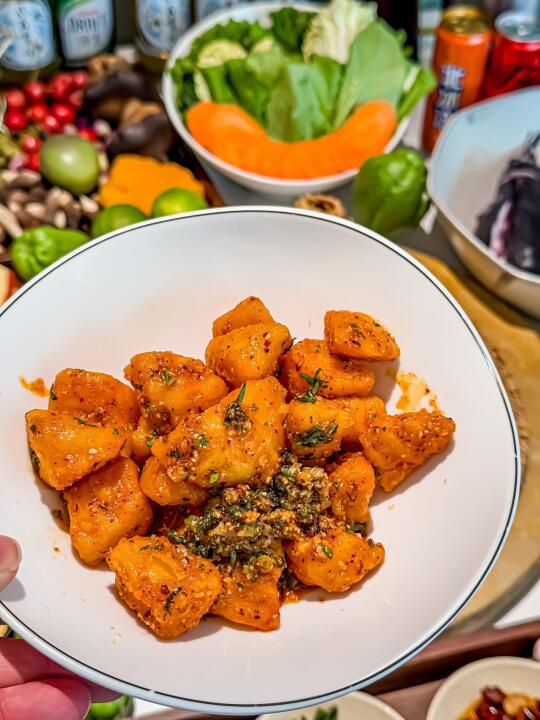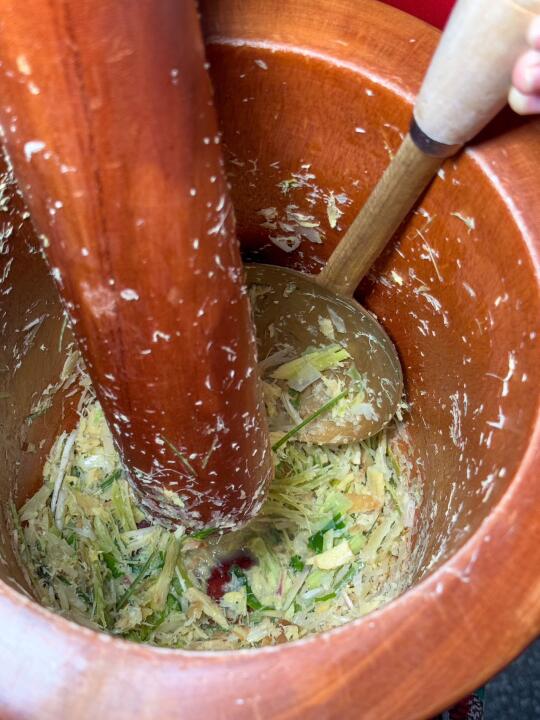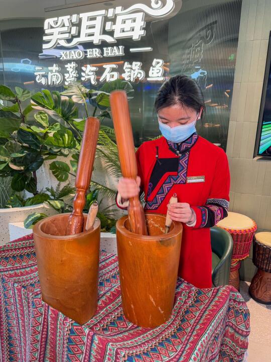 还没走进店里,就能看到服务员小姐姐现场舂锅底,这仪式感直接拉满!这可不是普通的锅底,每一份都是新鲜舂制,独特的香气瞬间把人吸引住,就知道这顿肯定不简单。