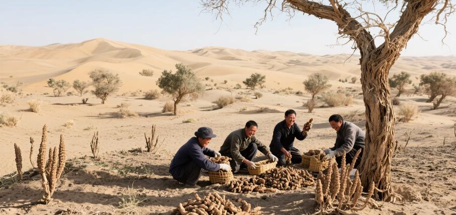 别以为种树只能防沙,这些沙漠里的树还能当 “摇钱树”!比如种梭梭树的时候,在根上接一种叫肉苁蓉的药材,收了能卖不少钱。有个团场种了 3500 亩梭梭,光卖肉苁蓉一年就赚了 1300 多万,农户一亩地能多挣 3000 块。还有红柳树上嫁接大芸,于田县种了 20 多万亩,一年卖 4 个亿,好几千户人家靠这个脱贫。