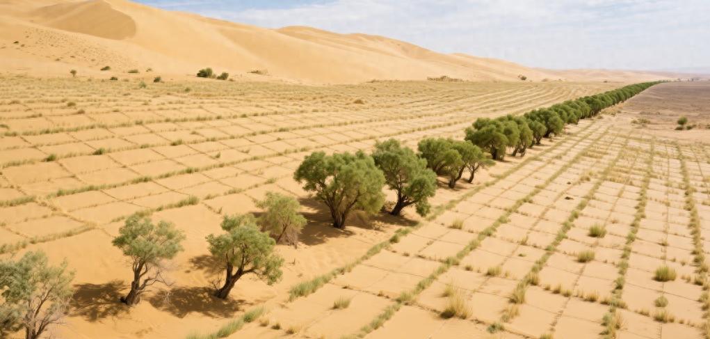 一、流沙得到控制,周边生活更安稳以前这沙漠边缘的沙子跑得特别快,每年能往前挪几十米,附近的村子、农田、公路都快被埋了。现在不一样了,在沙漠边上种了一大圈树,还铺了草方格(就像给沙子盖了 “格子被”),把沙子死死 “锁” 住了。比如国道旁边的流沙,现在基本不动了,3000 多公里的防护带把沙漠圈了起来,周边 500 多万亩农田、200 多万人的家都安全了。