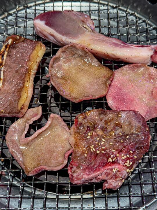 黑松露板腱:牛肉纹理超漂亮,像艺术品一样。刚放上烤盘就滋滋冒油,肉香瞬间散开。搭配黑松露酱,那浓郁香气真的太诱人了,一口下去,鲜嫩多汁,牛肉的本味和黑松露独特香气完美融合,好吃!
