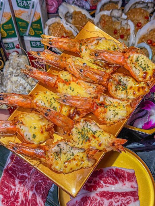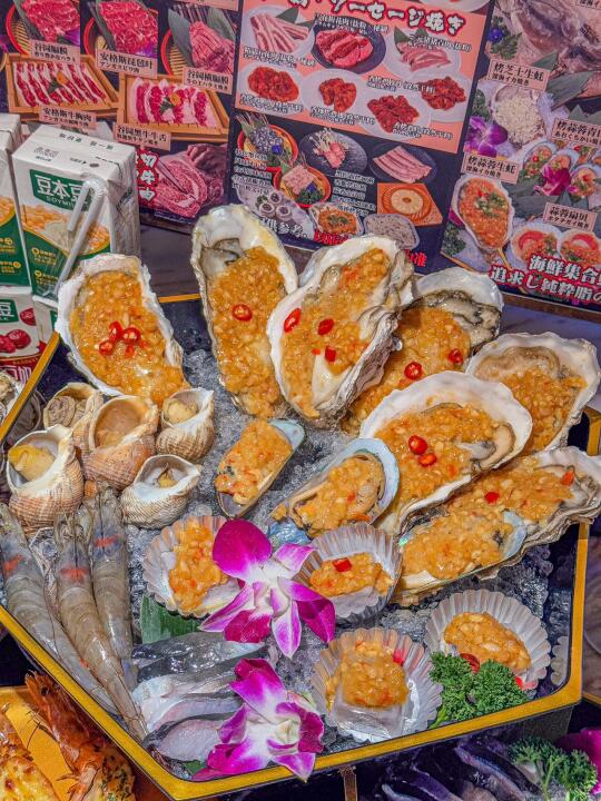 蒜蓉生蚝:个头超大,每个都肥嘟嘟的。蒜蓉烤得金黄,香气直钻鼻腔。生蚝肉鲜嫩,咬下去汁水四溢,满满的就是鲜味儿,仿佛在海边吃刚捞上来的生蚝!