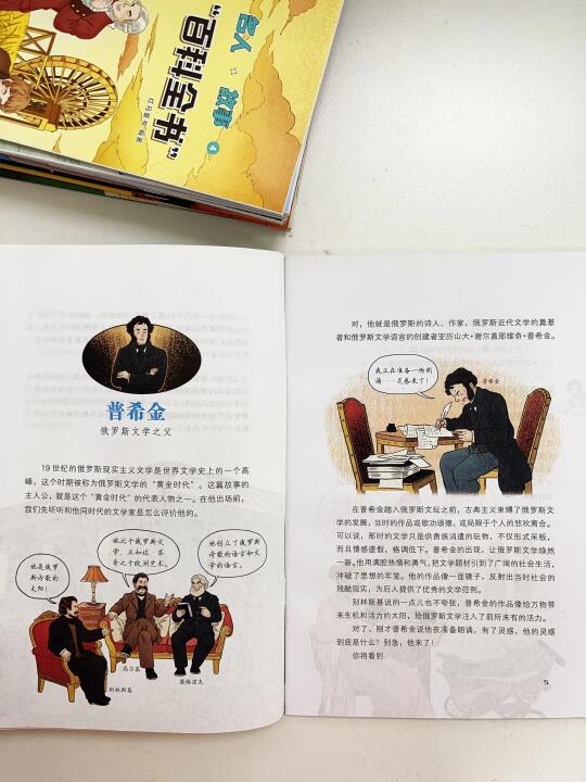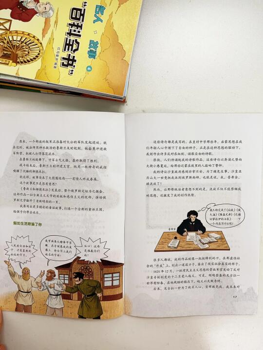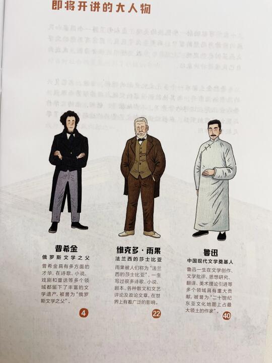 可别小看,每位人物只有15-20页的介绍,但是他们的重要事迹都有介绍到,内容不亚于成人阅读的大部头书。语言简洁,每句话多集中在10个字内,主要靠语言内部逻辑链接,这才是真正见识作者团队的语言功底。娃儿读起来朗朗上口,写作的时候拿来就能用。