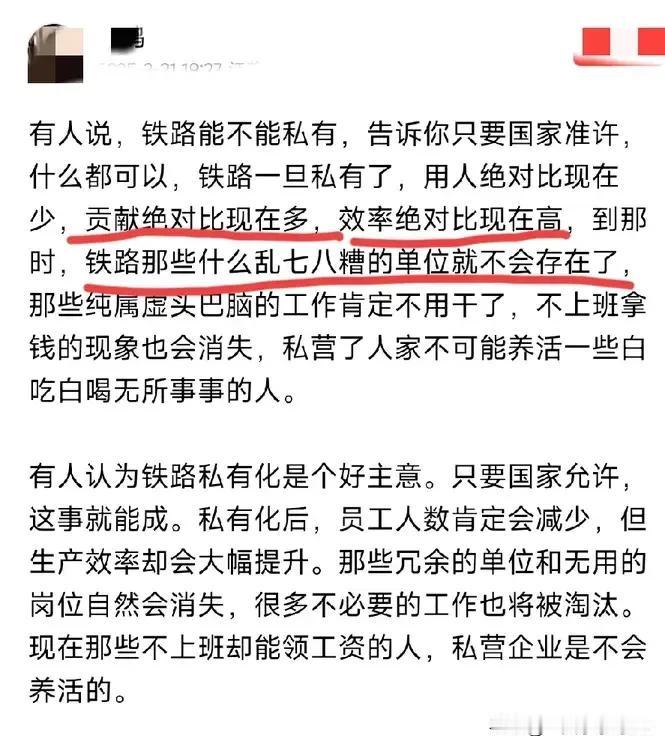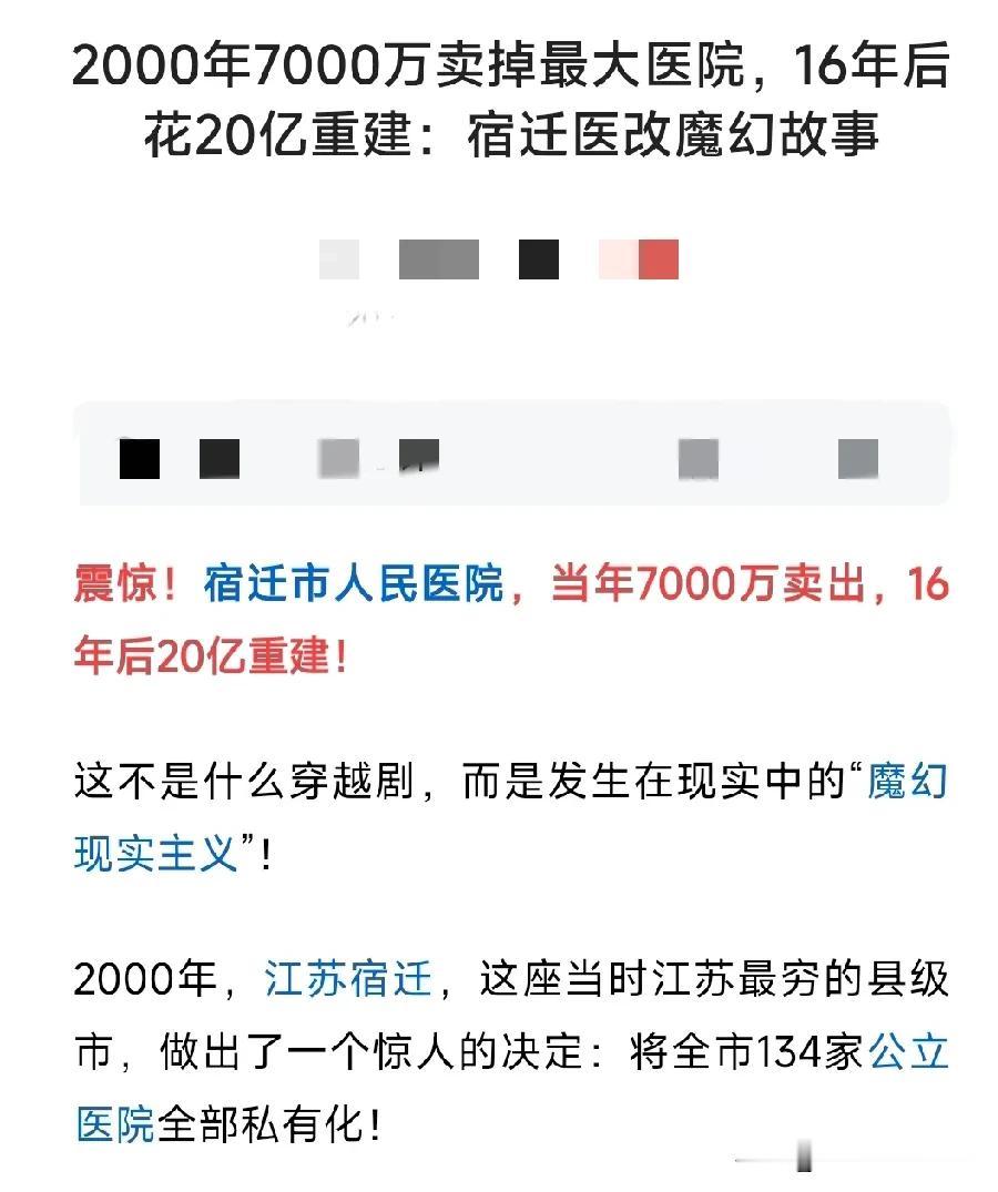 又有人跳出来说要搞全盘私有化,比如铁路。这个套路和柳八爷10多年前说的是一模一样,只是八爷看重的是医院这块蛋糕。 你别说当年还真有人信了这一套。比如宿迁,把全部医院都私有化了,老百姓最后只能异地看病。当地政府后来没辙了,想着我7,000万卖掉的,我20亿买回来吧,结果别人还不卖呢,因为医院真赚钱啊! 顺便提一句,当年把宿迁医院全部卖掉的那个人,判了14年。