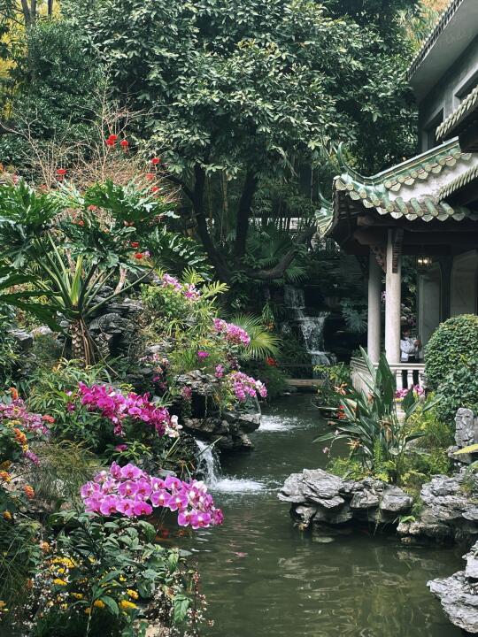 如果带爸妈在广州喝茶 一定要来这里,包满意的 岭南园林风,好多可爱的具有广东特色的花🌸草🌿 早茶价格在可接受范围内,大部分点心也都好吃,老式点心糖沙翁很出色 环境太好,赏心悦目