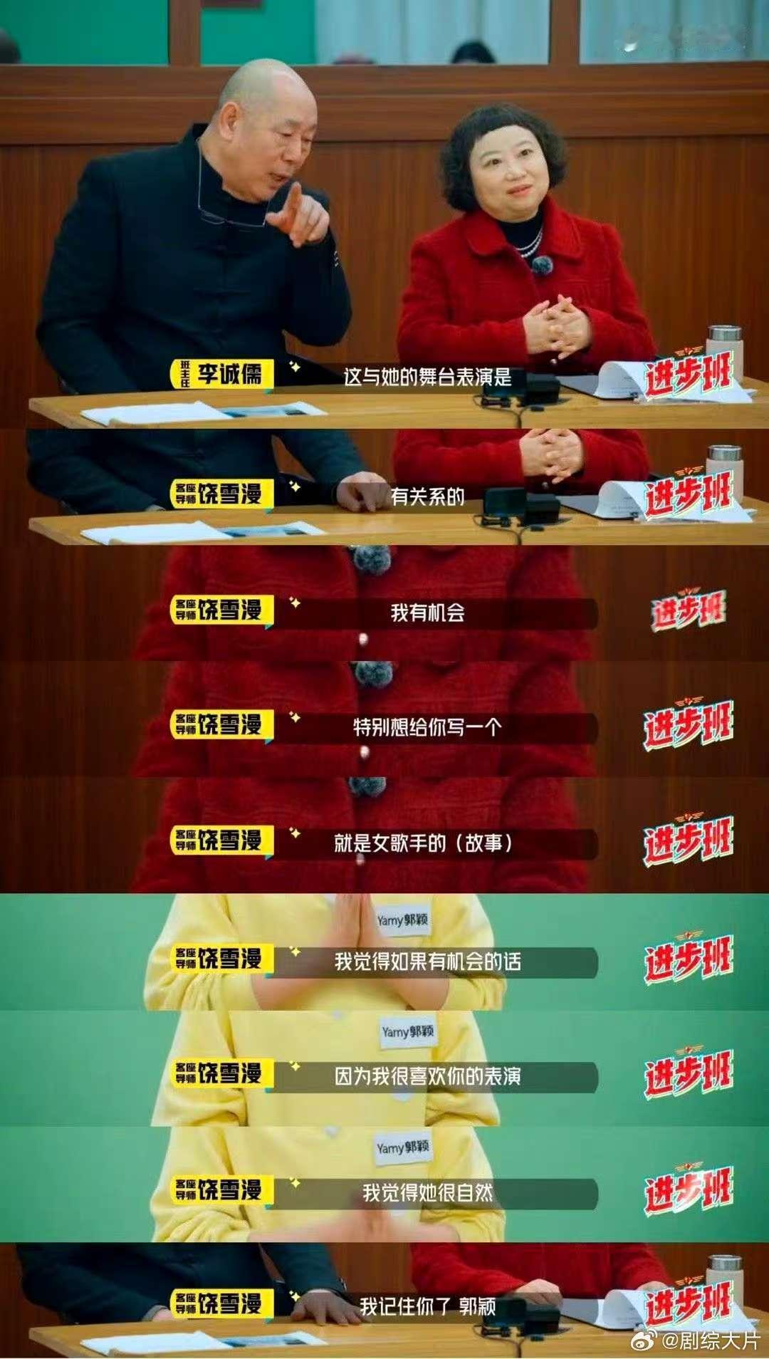 Yamy演技被李诚儒饶雪漫肯定 原以为Yamy是唱跳舞台王者,没想到在《进步班》演戏也这么厉害 。得到李诚儒和饶雪漫肯定,期待她在演艺道路上一路狂飙。
