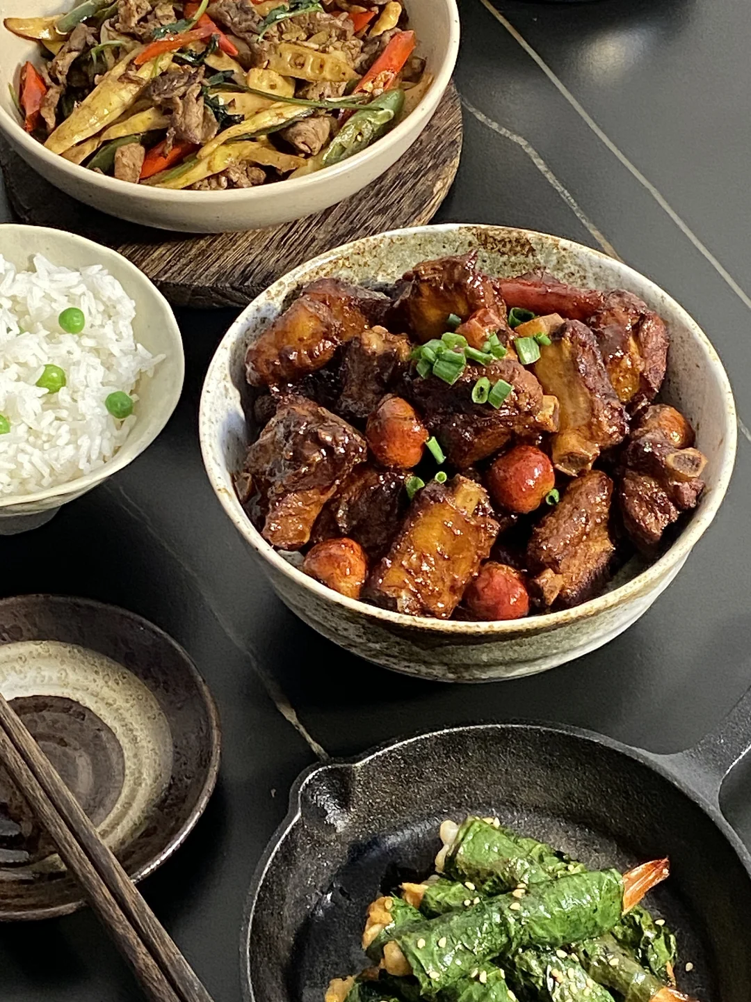今日食谱📜山楂排骨 泡椒牛肉 紫苏虾卷🥢