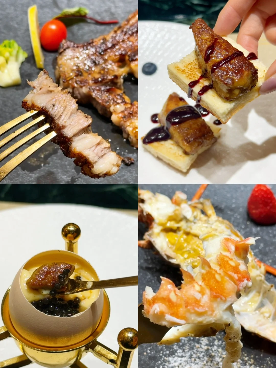 黑松露牛肉炒饭🌟、小青龙🌟、鹅肝鱼子酱蒸蛋、4头鲜鲍鱼、法国鹅肝🌟、大元贝🌟、新西兰羊扒、黑松露生蚝🌟。