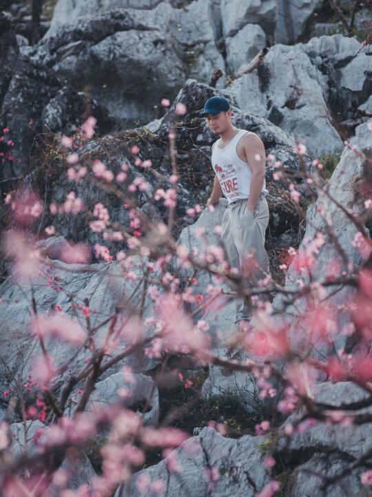 **机位**:如果住在附近,可在清晨前来拍摄,露水未晞时拍石纹与花瓣的肌理对比,长焦压缩远景,水墨感拉满,会超级出片。