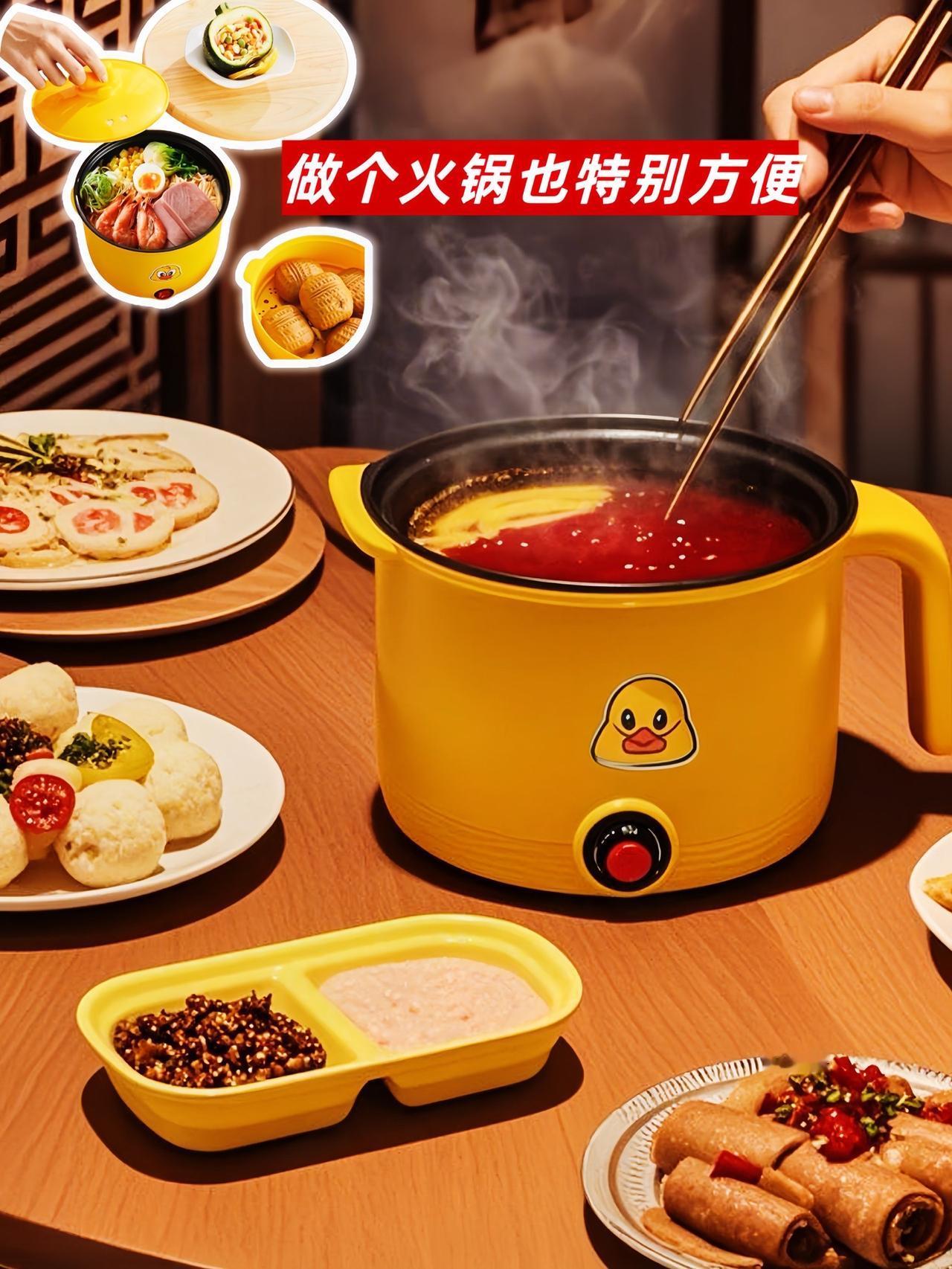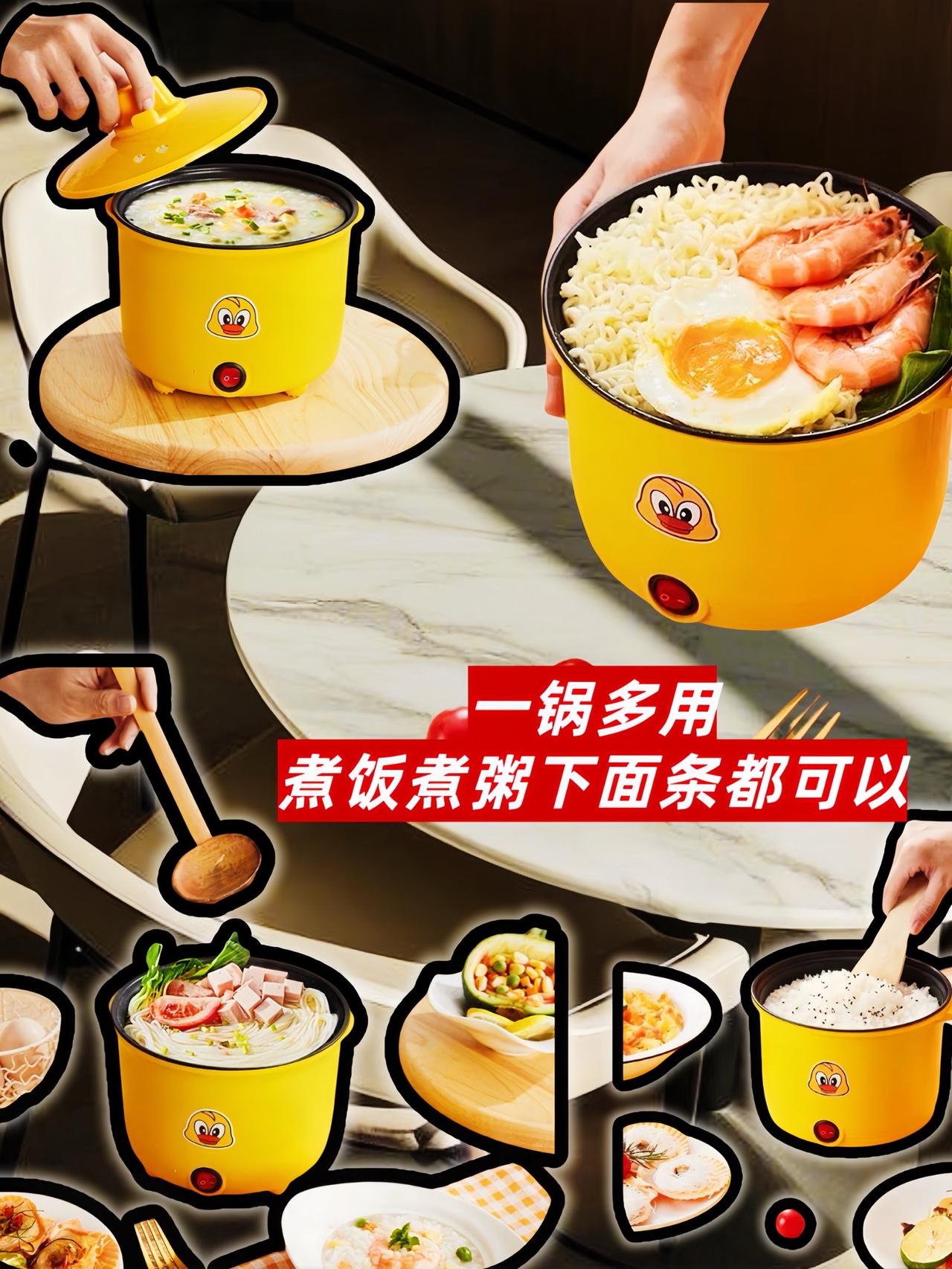 【小黄鸭多功能电煮锅 —— 萌趣厨房,美味一触即发!】 让烹饪变成一场欢乐派对!小黄鸭多功能电煮锅,以萌趣外观点亮厨房,每一次下厨都是一场趣味之旅。小巧玲珑,却功能强大,煎、煮、炖、蒸样样精通,满足您日常美食的所有幻想。快速加热,均匀导热,锁住食材原汁原味,让每一口都是满满的幸福感。安全自动断电设计,守护您和家人的安全。它不仅是一件厨房电器,更是生活中的甜蜜点缀,让烹饪变成一种享受,让爱与美味同频共振。小黄鸭多功能电煮锅,让厨房因你而精彩,让美味生活一触即发!多功能电煮锅 炒煮蒸炖一体电锅 厨房好物