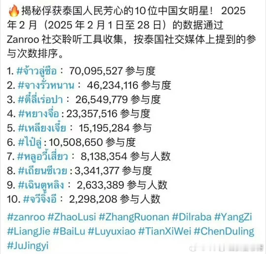 泰国人民最爱中国女明星赵露思居榜首,断层第一☝🏻海外人气不是说说而已🔥