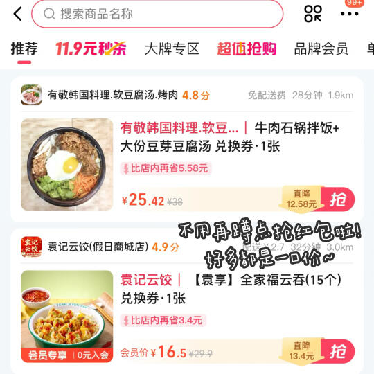 最近比较馋,经常点外卖加餐~发现饿了么最近推出了一个新功能:超抢手!🥳 这个功能里面都是一些品牌美食~ 干净又卫生,关键是性价比超高! 我点了一份石锅拌饭➕豆芽汤➕泡菜,才27💰 如果不用超抢手的话,同样价位只能点一份石锅拌饭🥹 除此以外,还有很多其他的美食和饮料! ✅霸王茶姬的大杯伯牙绝弦,14.8💰 ✅星巴克的榛果拿铁,22.9💰 ✅KFC的芝士猪柳蛋帕尼尼套餐,17.9💰 感觉这个功能很适合大学生和上班族!可以省好多💰