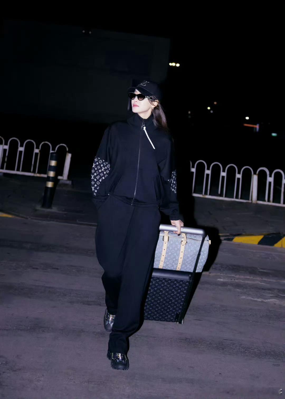 宋茜出发巴黎时装周,all black ,姐好酷[哇] 宋茜lv品牌代言人 宋茜
