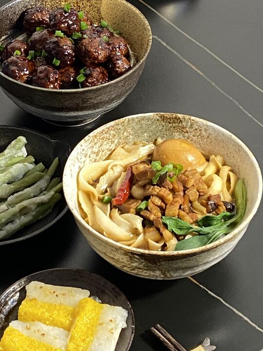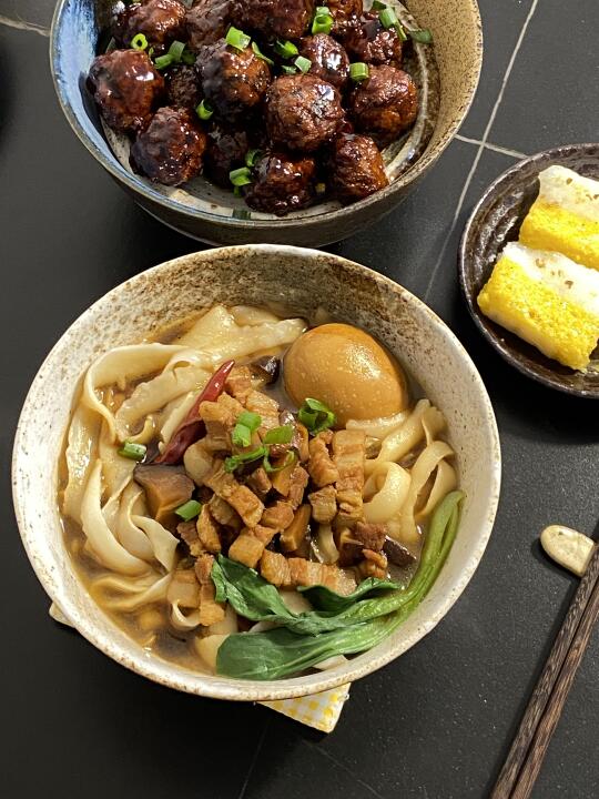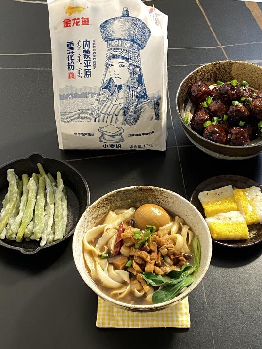 今日食谱📜卤肉刀削面 糖醋丸子 沾片子🥢