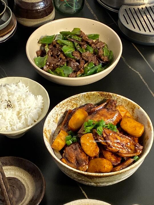 今日菜谱📜年糕鸡翅 小炒黄牛肉 酸辣土豆丝