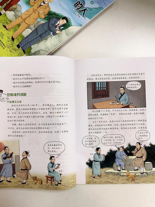 原大套装66册名人有200多位,24年漫画名人故事12册涵盖36位名人,基本覆盖课本中的名人,但是不仅仅局限于课本中,娃儿读名人,读故事不仅仅被这些名人的精神所激励所鼓舞,实际点的就是,娃儿读了就能用起来,比如还是看颜真卿、范仲淹、辛弃疾这三位人物,他们的古诗词经常考得到,需要理解背诵,在这套名人故事中,提前get到他们的经历,再回归课本是不是更好理解,再者,娃儿语文课本口语交际里让写人物的作文,随时用得到!