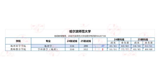 ▫️地理学学硕降 37 分至 299,学科地理涨 2 分至 350