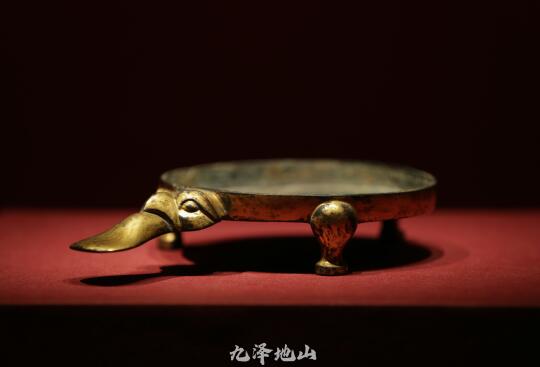 两千多年前的西汉鎏金鸭形行灯。 摄于西安镐金博物馆。