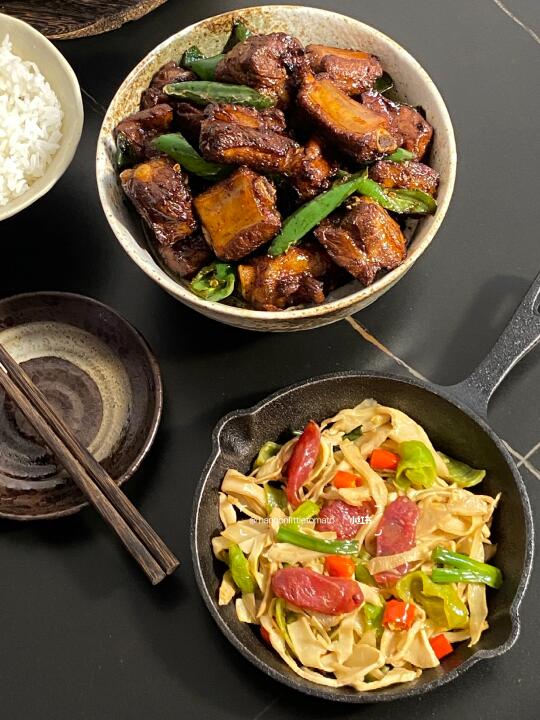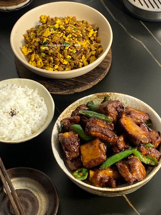 今日菜谱📜辣椒炒排骨 外婆菜炒蛋 腊肠炒笋